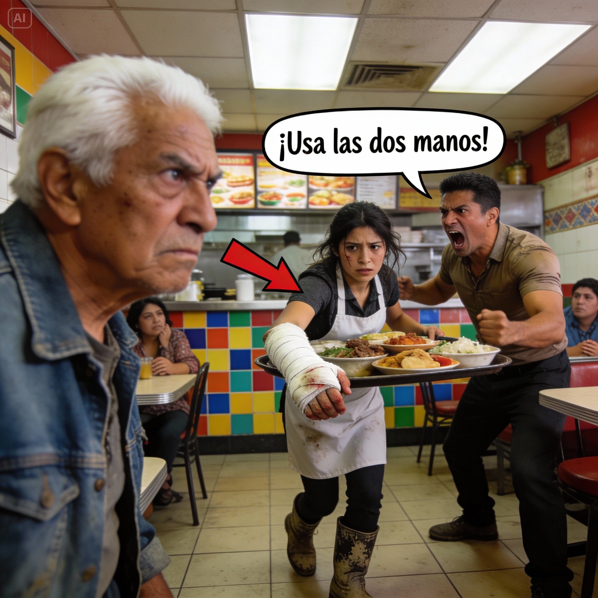 La tenía pegada al cuerpo, en una posición antinatural, rígida como una tabla. Al principio pensé que estaba entumida, pero cuando giró para dejar una orden de enchiladas en la mesa 5, lo vi claro bajo la luz de los neones. Un vendaje. No era un vendaje médico, limpio y profesional. Eran tiras de gasa vieja, sucias por el uso, envueltas torpemente alrededor de su muñeca y parte de la mano, tan apretadas que los dedos que asomaban se veían hinchados y amoratados.