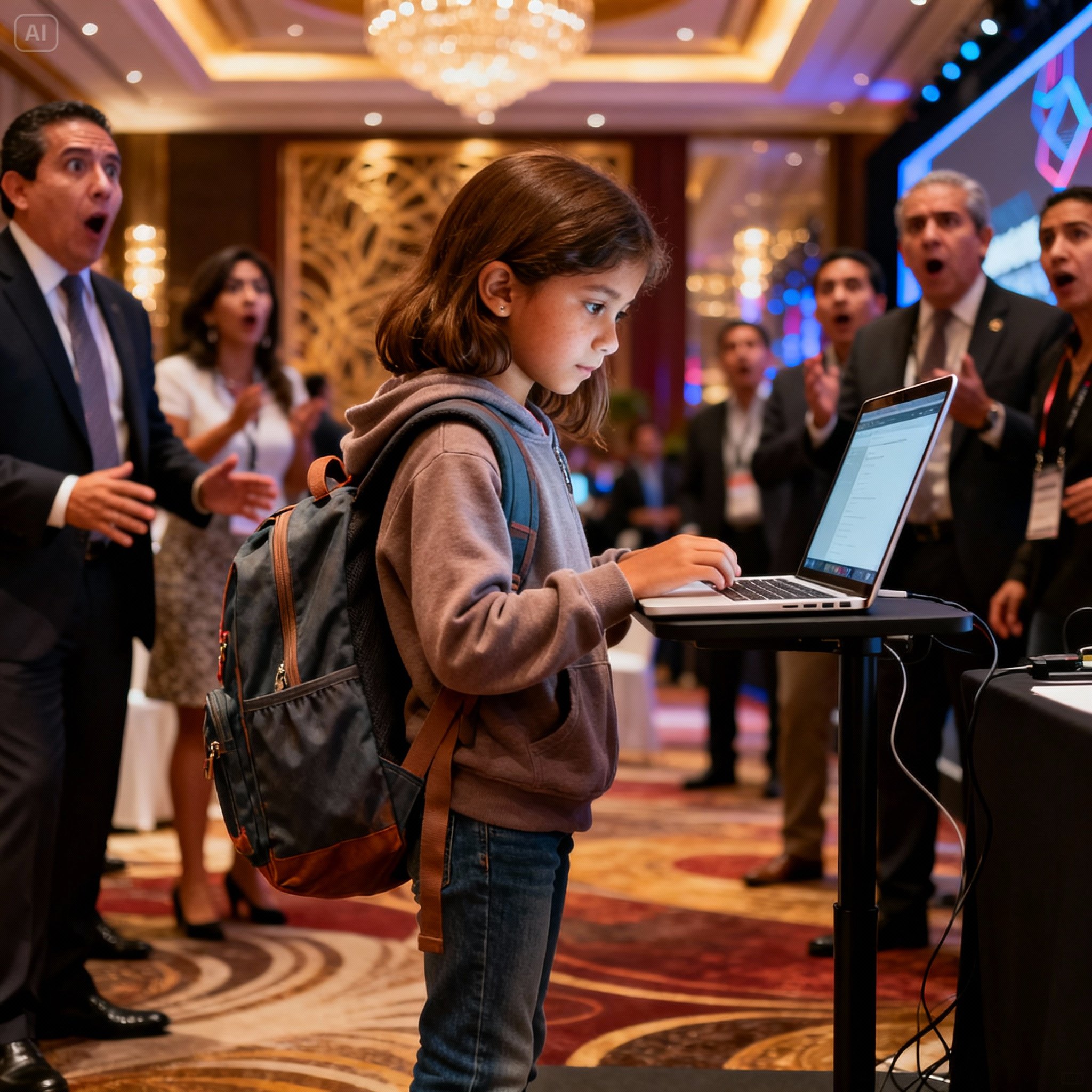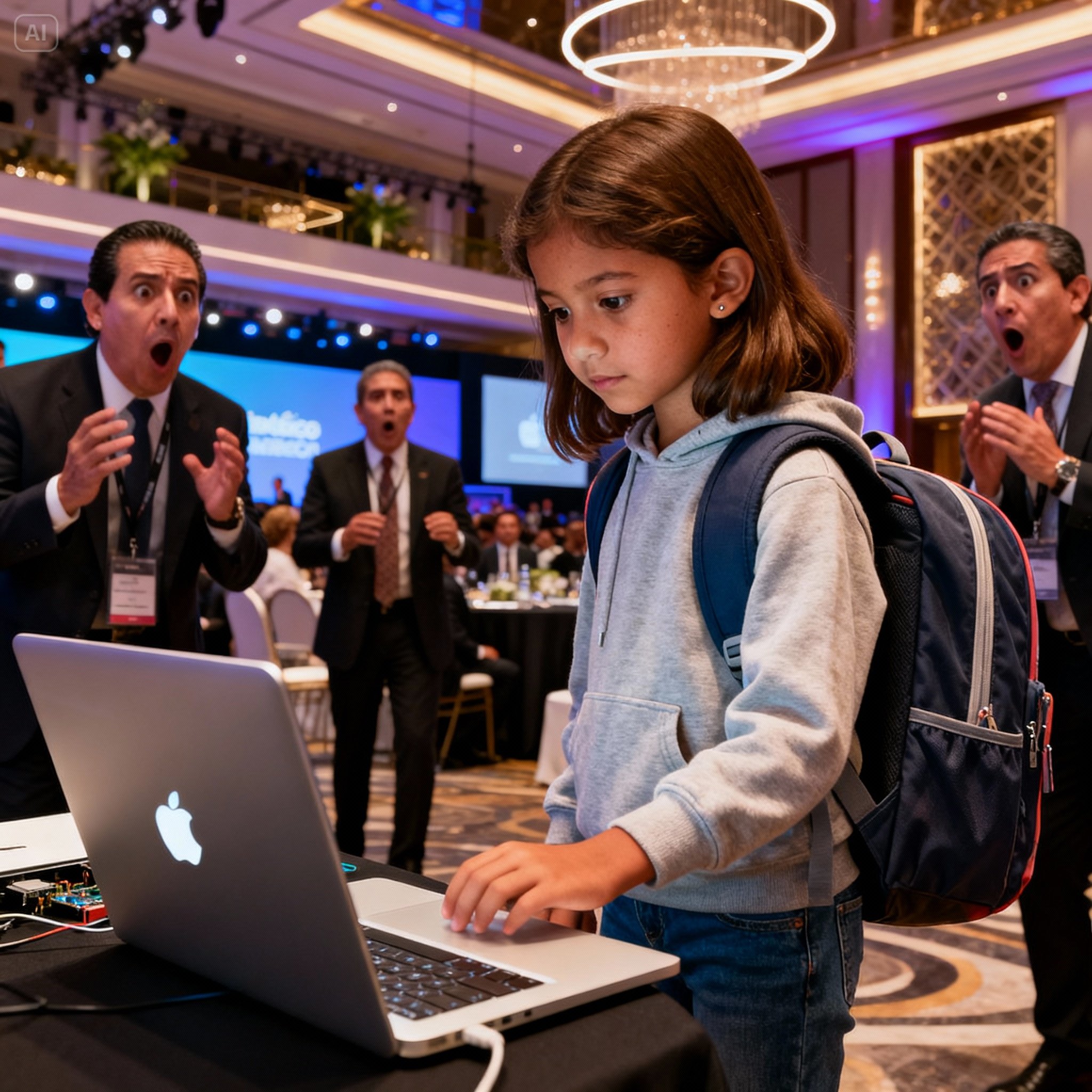 Mientras Montemayor hablaba, Xóchitl activó a Hada de forma remota. El dispositivo se conectó a la red del lugar, encontrando caminos hacia el sistema de presentación. En segundos, el guion del teleprompter de Montemayor había sido archivado discretamente y reemplazado. “Concursante 12, Zara Sánchez,” llamó el anunciador. Xóchitl se acercó al escenario, Hada agarrada en sus manos. Al pasar junto a Montemayor, un atisbo de reconocimiento brilló en sus ojos, rápidamente enmascarado por la confusión. Conocía ese rostro, pero no podía ubicarlo. Todavía no. Mientras Xóchitl subía al escenario, sonriendo a las cámaras, él no tenía idea de que el algoritmo que ejecutaba el teleprompter ahora le pertenecía a una niña de doce años sentada en la última fila.
