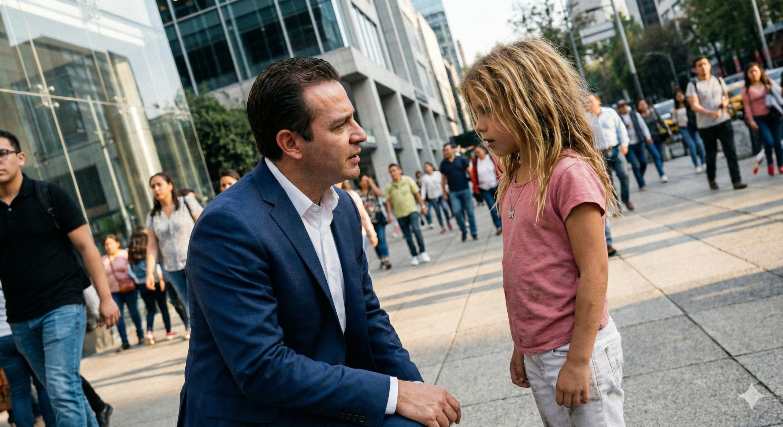 Era una niña. No tendría más de cinco años. Iba llorando a mares, con la carita sucia surcada por ríos de lágrimas y el pelo castaño enmarañado por el viento. Llevaba una camiseta rosa que había visto mejores días y unos tenis rotos, de esos que ya piden clemencia a gritos. En sus manitas apretaba con desesperación un papel arrugado —una receta médica, quizás— y unas pocas monedas, tan fuerte que sus nudillos estaban blancos.