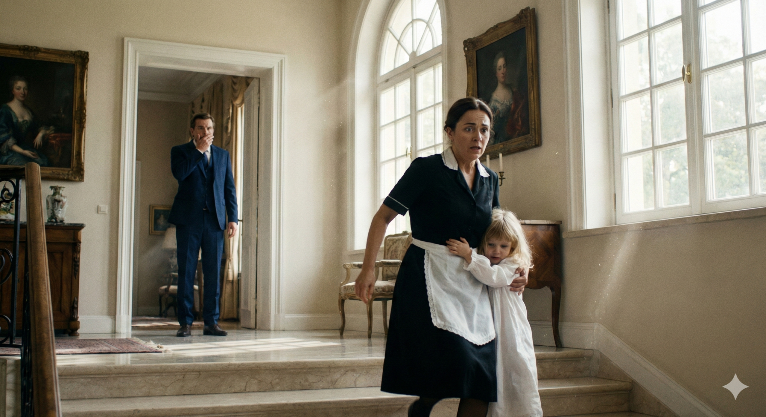 Pero nadie se movía. Nadie actuaba. El miedo a equivocarse, el terror reverencial al “Patrón”, era más fuerte que el instinto de salvarla. Clara, que estaba limpiando los ventanales del jardín, entró corriendo al escuchar el golpe. Con el corazón golpeándole en el pecho como un tambor de guerra, corrió hasta la niña. Se arrodilló sin importarle el protocolo, le tocó la frente y notó el sudor frío y pegajoso. Buscó el pulso en su muñeca: irregular, débil, apenas un hilo de vida.