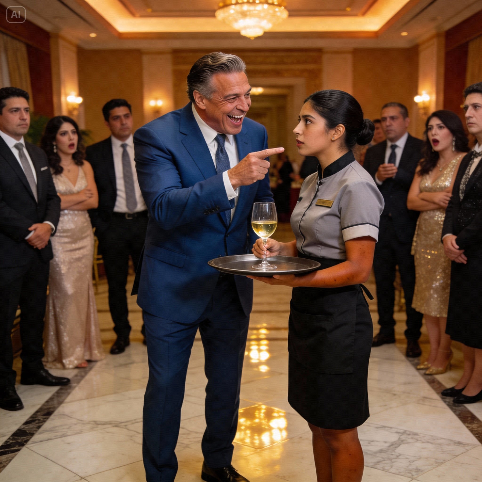 El tiempo se detuvo. Vi las copas de champán inclinarse en cámara lenta. El líquido dorado saltó por los aires, empapando mi uniforme de catering. Los canapés de salmón, preparados con una precisión quirúrgica, terminaron esparcidos sobre el piso de mármol y sobre mis zapatos negros desgastados. El frío del alcohol caló mi piel, pero lo que realmente me quemaba era la humillación.