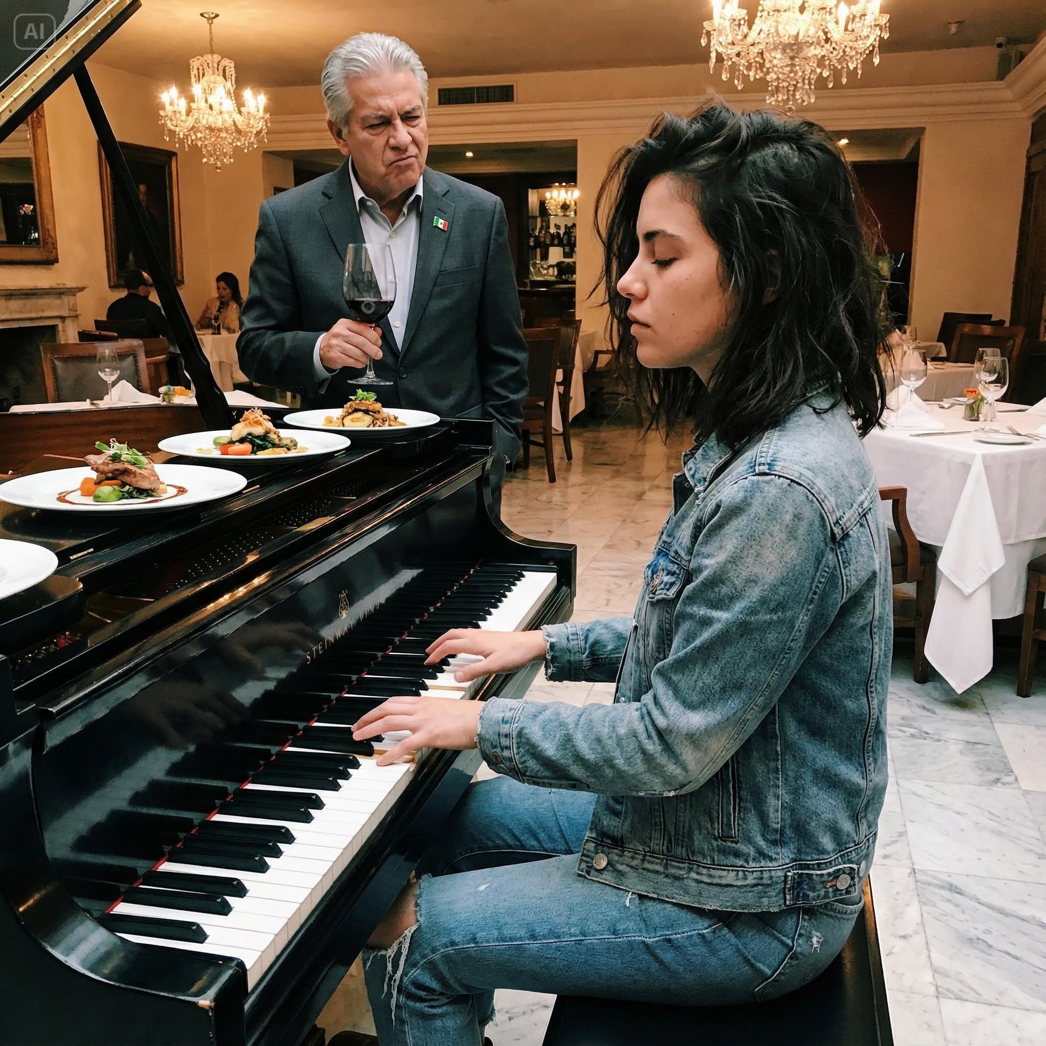 —Hagamos un trato —dijo, elevando la voz lo suficiente para que las mesas cercanas escucharan. El restaurante se fue quedando en silencio. El show estaba por comenzar—. Dices que quieres ganarte la comida. Que quieres trabajar. Señaló el piano con un dedo anillado en oro. —Ese piano es una pieza de colección. Lleva años ahí, acumulando polvo porque los “músicos” que contrato tocan basura sentimental que me arruina la digestión.