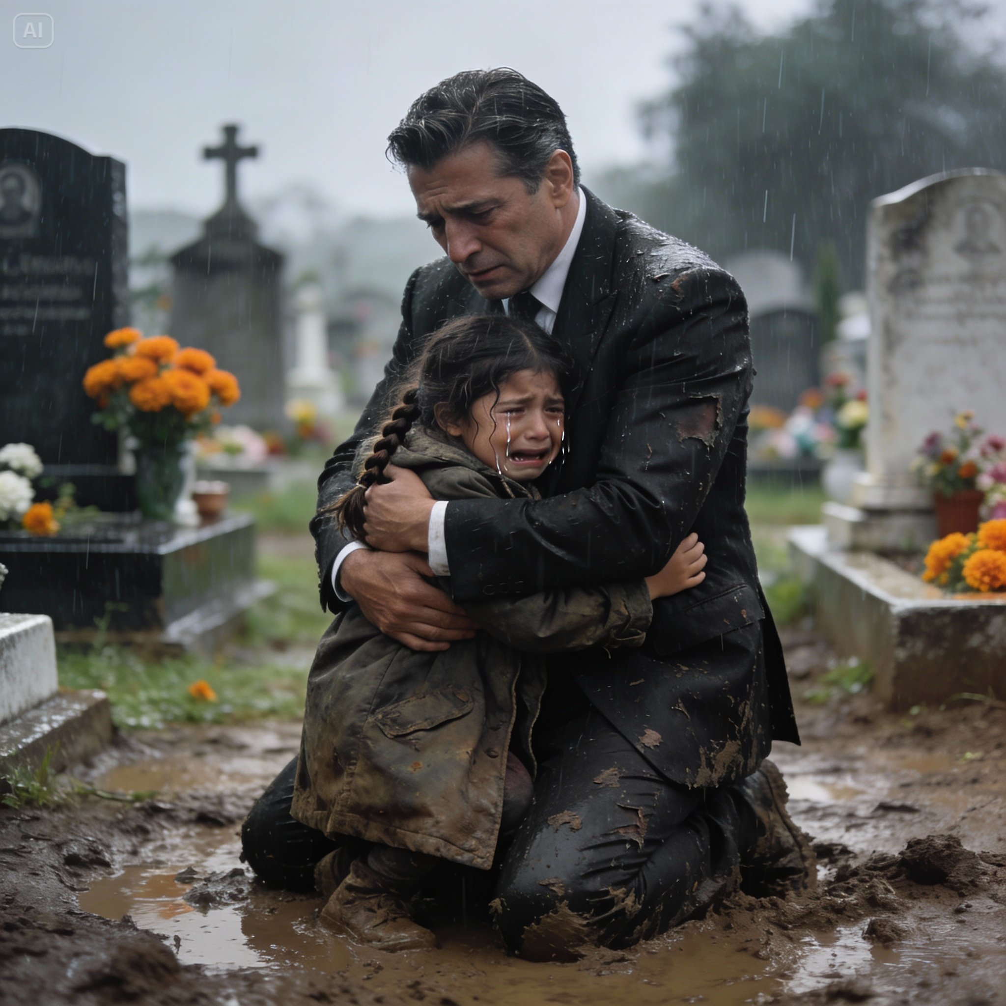 Frente a él, el servicio funerario había terminado. O al menos, lo que podía llamarse un servicio. Había sido breve, dolorosamente austero. Un sacerdote cansado que miraba su reloj discretamente, dos sepultureros ansiosos por terminar antes de que el lodo hiciera imposible su trabajo, y una caja de madera sencilla, de pino sin barnizar, descendiendo a la tierra húmeda. No hubo flores exóticas, ni coronas gigantescas con listones de seda, ni filas de autos negros esperando. Solo hubo silencio y el sonido rítmico, casi hipnótico, de la lluvia golpeando la tierra removida.