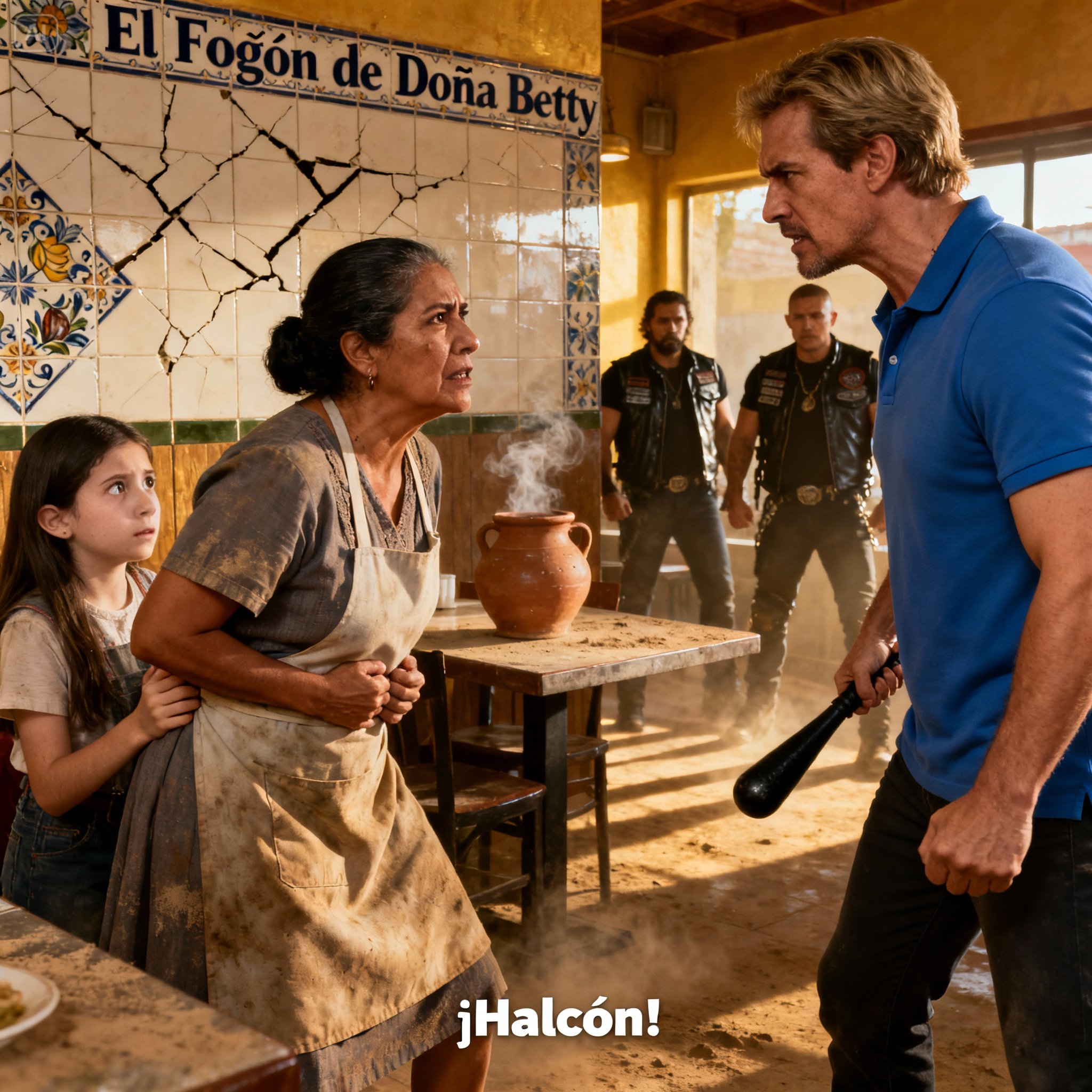 En el rincón, la mesa habitual de Los Forajidos de la 45 estaba ocupada. Halcón (el líder, con ojos que habían visto demasiada carretera), Cruce (el flaco, silencioso y rápido como un alacrán), y El Gordo (el muro de músculos y cuero) apuraban su café. Eran rudos, cholos y temidos, pero en El Fogón eran solo clientes que pagaban en efectivo y respetaban mis reglas. Eran la banda sonora de la fonda, el contrapeso de la paz.