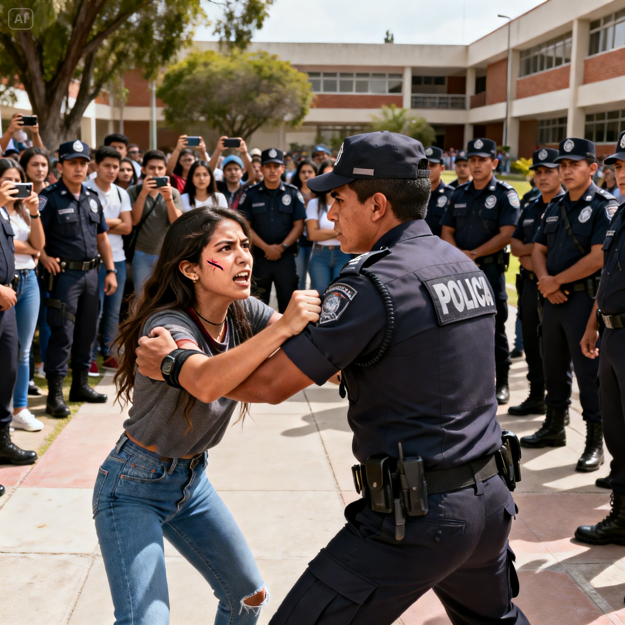 Pero ella no retrocedió. Con una mano firme, mantuvo el celular grabando, transmitiendo en vivo. —¡No me toque! —exclamó con fuerza—. Estoy en mi derecho de grabar. Si este operativo es legal, ¿por qué le teme a la cámara? ¡Dígame su nombre y su número de placa!
