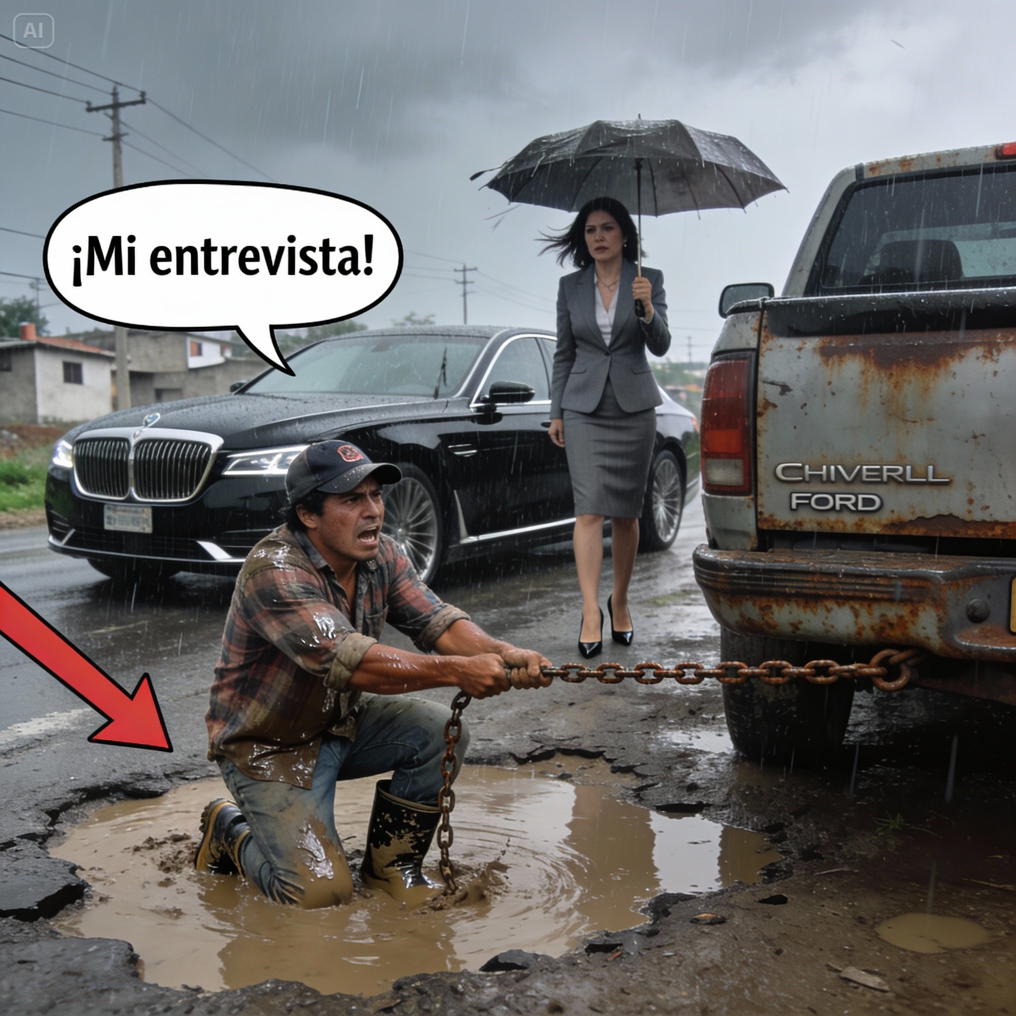 —¿Con eso? —preguntó, señalando a “La Gorda”—. Mi auto pesa dos toneladas y está enterrado hasta el eje. Necesito una grúa de plataforma.