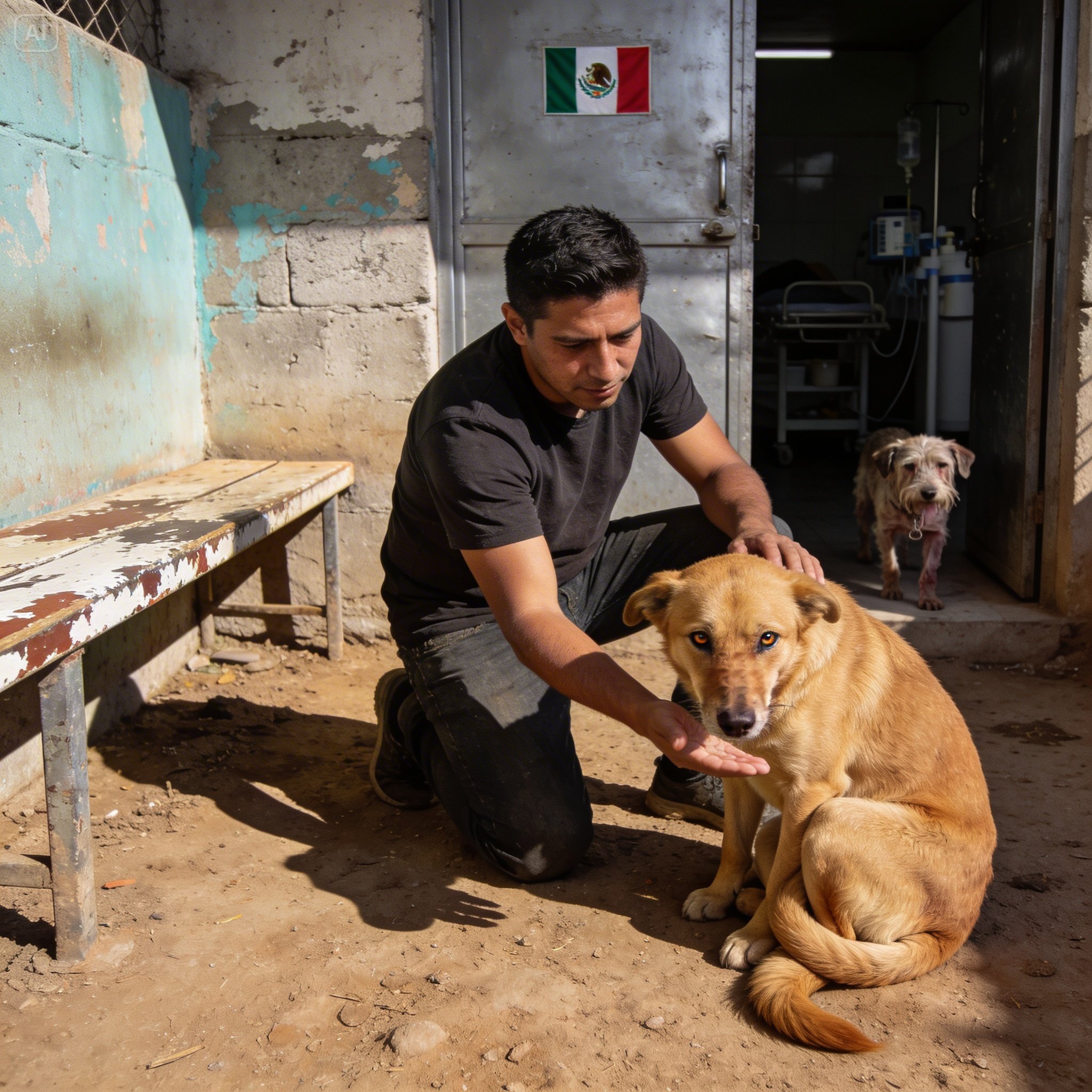 —Benito es un perro viejito, muy viejito —continuó Sara, con un nudo en la garganta evidente—. Es una cruza de French Poodle, pero está en los puros huesos, sin dientes. Y lo más triste… es completamente ciego. Cuando los encontraron, estaban refugiados bajo unas láminas oxidadas. Canela era la que salía a buscar restos de tortillas secas o basura, y se los llevaba a la boca a Benito. Ella era sus ojos, señor. Ella dormía enroscada alrededor de él para darle calor en las noches de lluvia. Eran inseparables. Cuando los trajimos al refugio, los tuvimos que separar porque Benito traía una infección muy fuerte y problemas de artritis severos. Lo metimos al área médica… esa puerta que Canela no quería soltar.