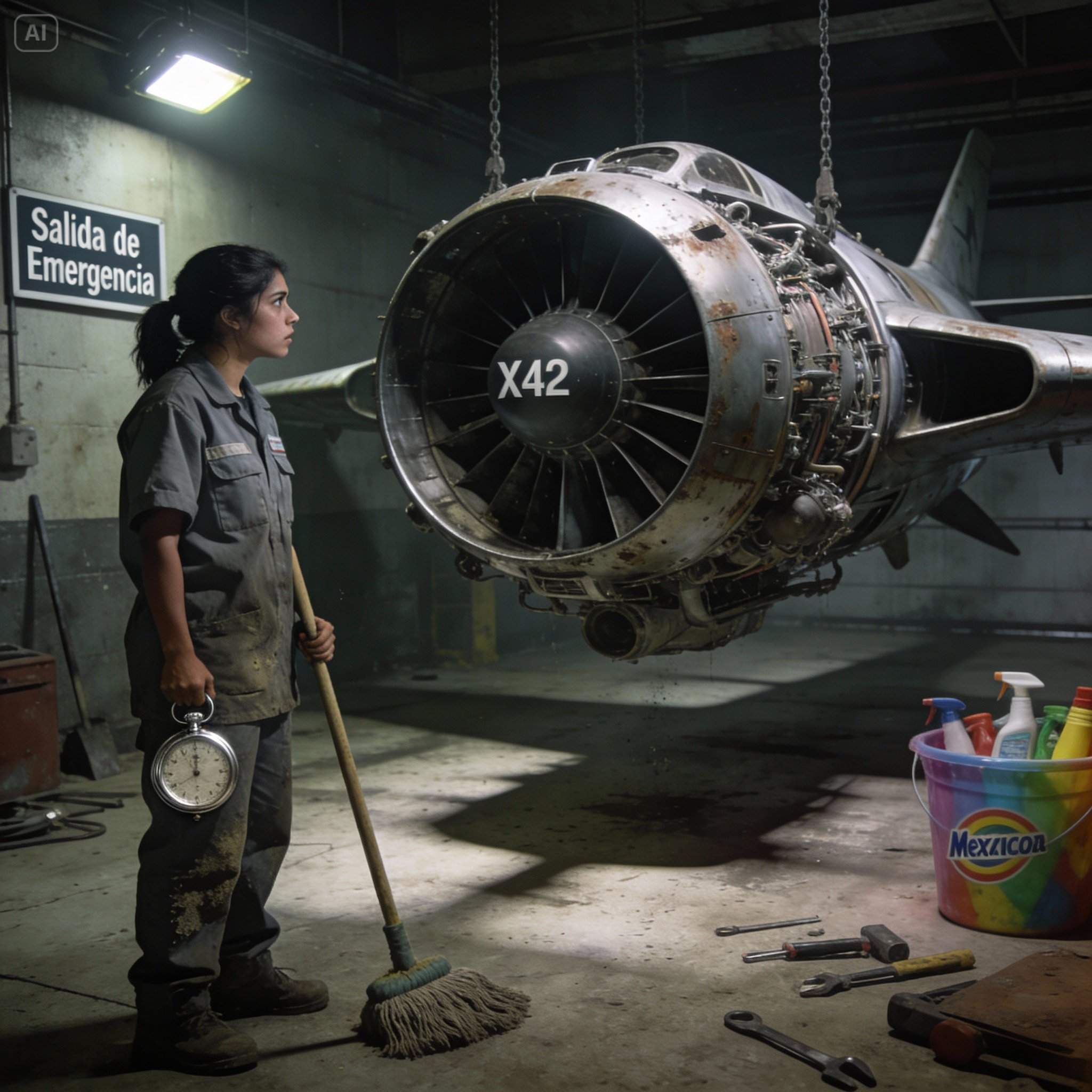 Recogió sus cosas rápidamente y salió de la nave, empujando su carrito de limpieza. Mientras caminaba hacia la salida de personal, sintió una extraña mezcla de triunfo y terror. Tenía las fotos. Sabía la verdad. El motor no estaba muerto; estaba secuestrado por la incompetencia.