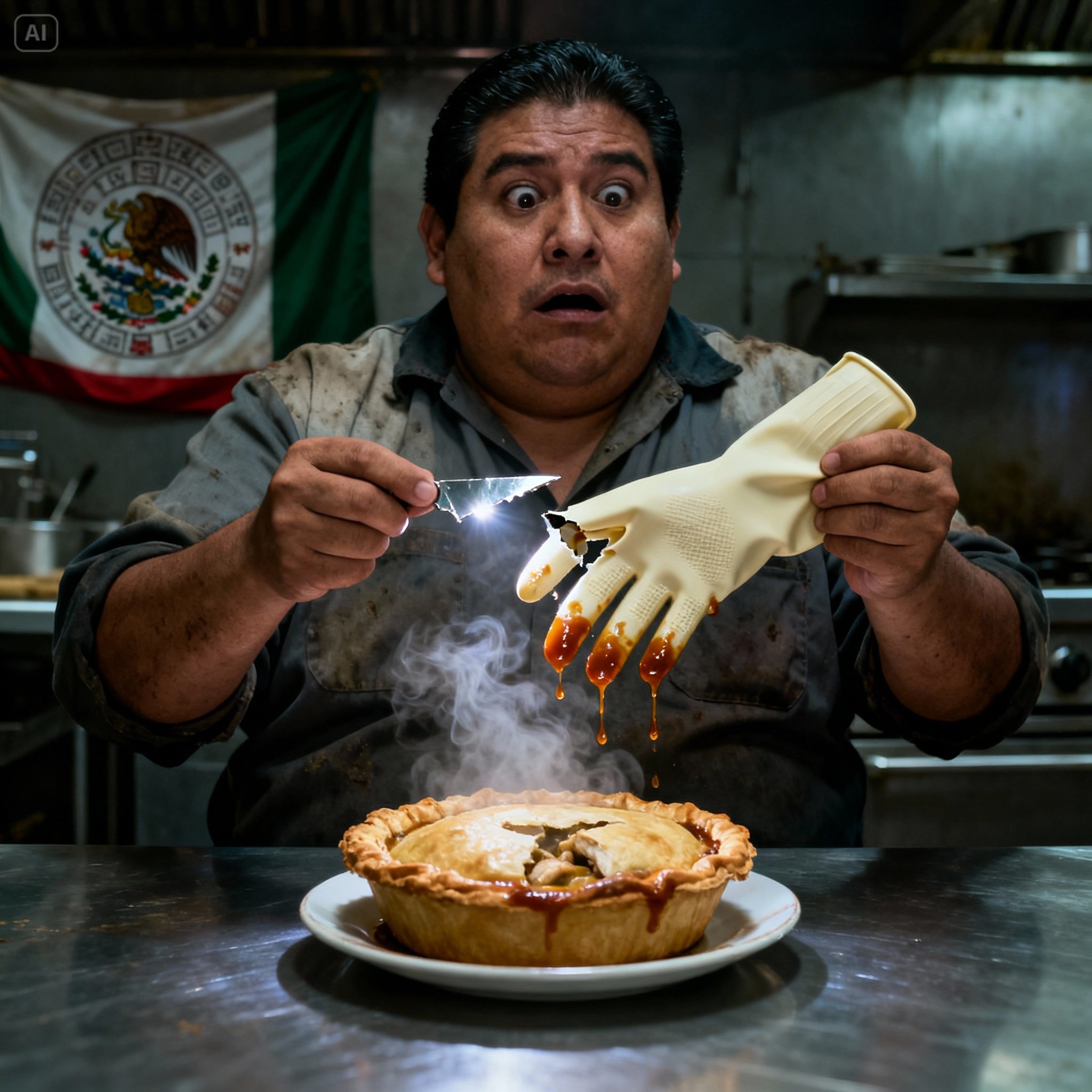 El dedo de guante de látex emergió. Empapado en salsa. Arrancado del nudillo. El metal brillaba por dentro. La salsa goteó. Espesa y cálida, como sangre.