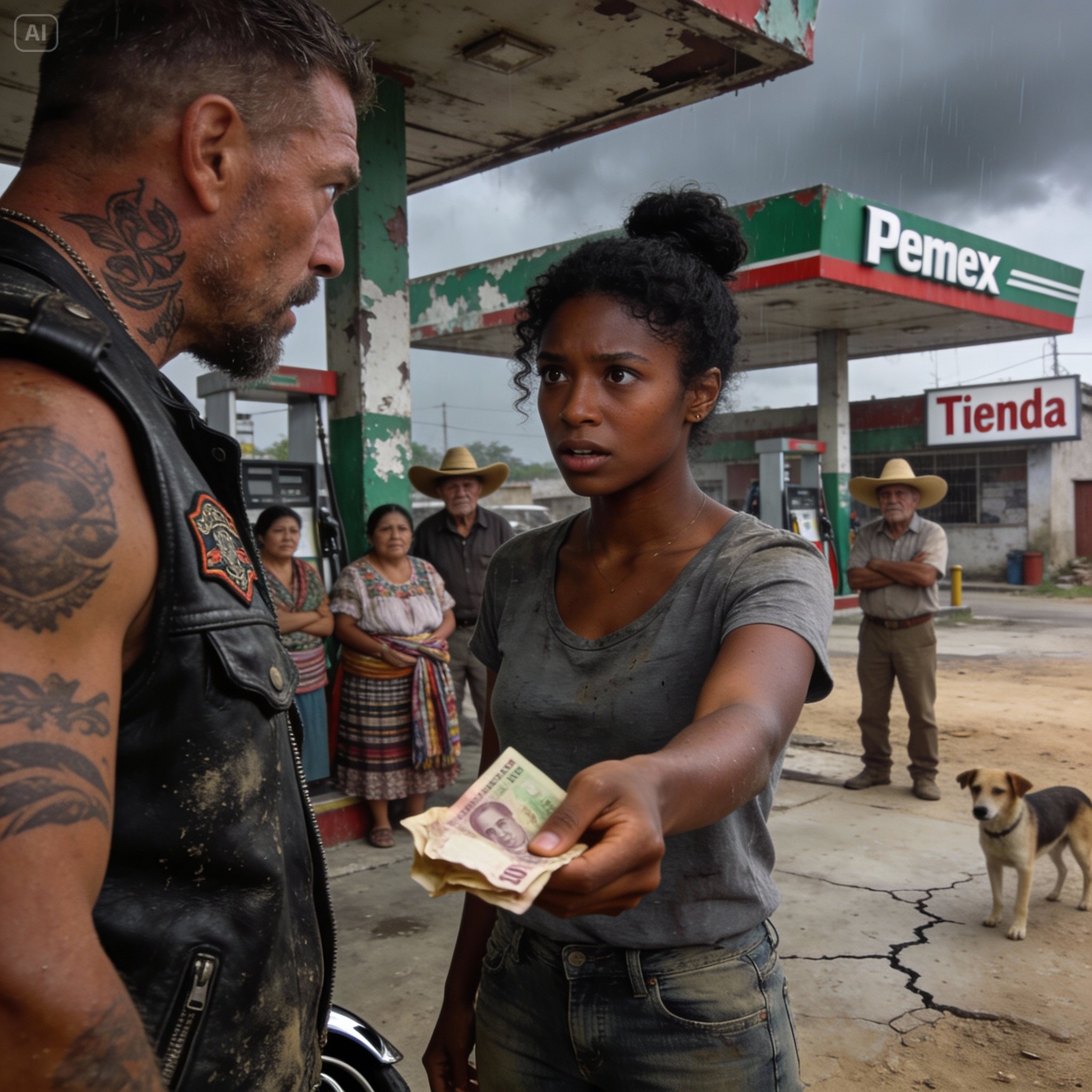 El motociclista entró a la gasolinera, reduciendo la velocidad. El motor petardeó una vez, un sonido seco como un disparo, y luego se detuvo junto a la bomba número tres.