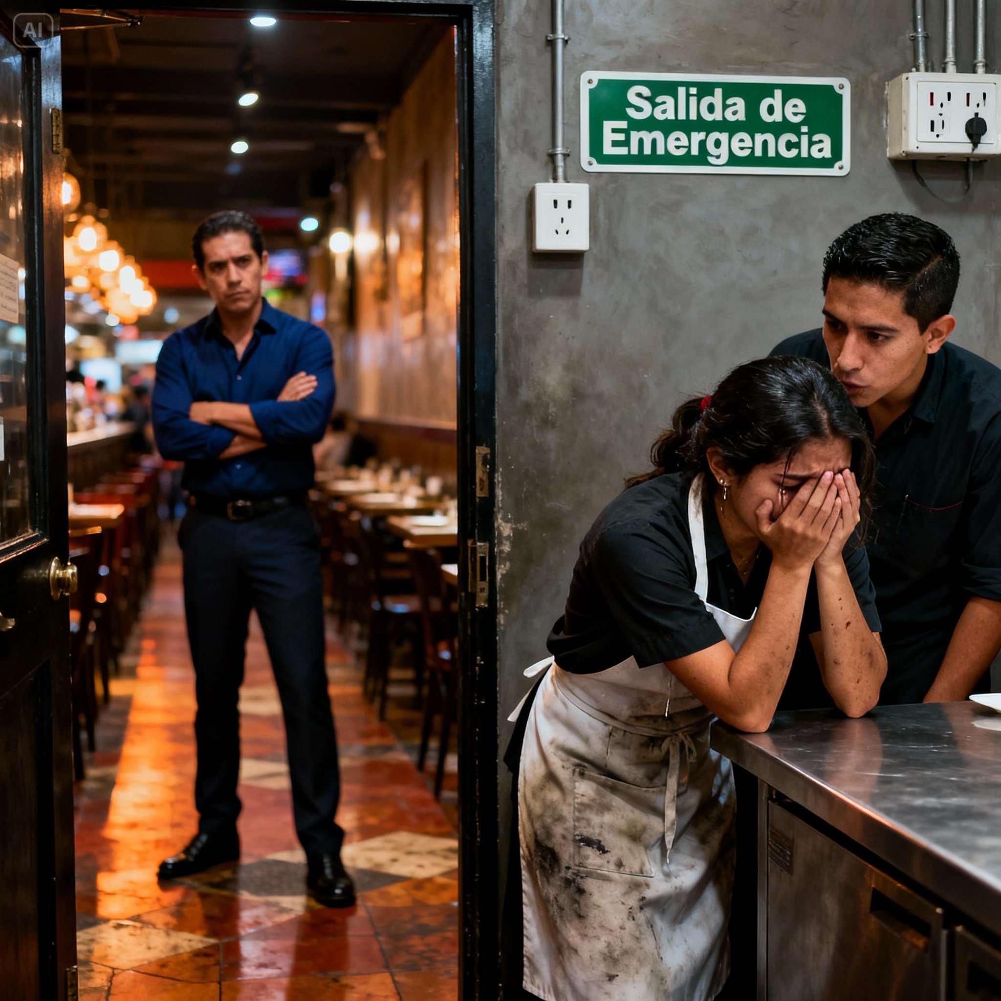 La escena me partió el alma. Adentro estaba Emilia. Era una de las meseras del turno de la tarde, una chica joven, quizá veintitantos años, que siempre había visto sonriendo en los reportes de fotos. Pero ahora, esa sonrisa estaba destrozada. Estaba encorvada sobre una mesa de acero inoxidable, con la cabeza entre las manos, su cuerpo sacudiéndose con espasmos silenciosos. Sus dedos se aferraban al borde de la mesa con tanta fuerza que sus nudillos estaban blancos, como si esa mesa fría fuera lo único que la mantenía anclada a la realidad.