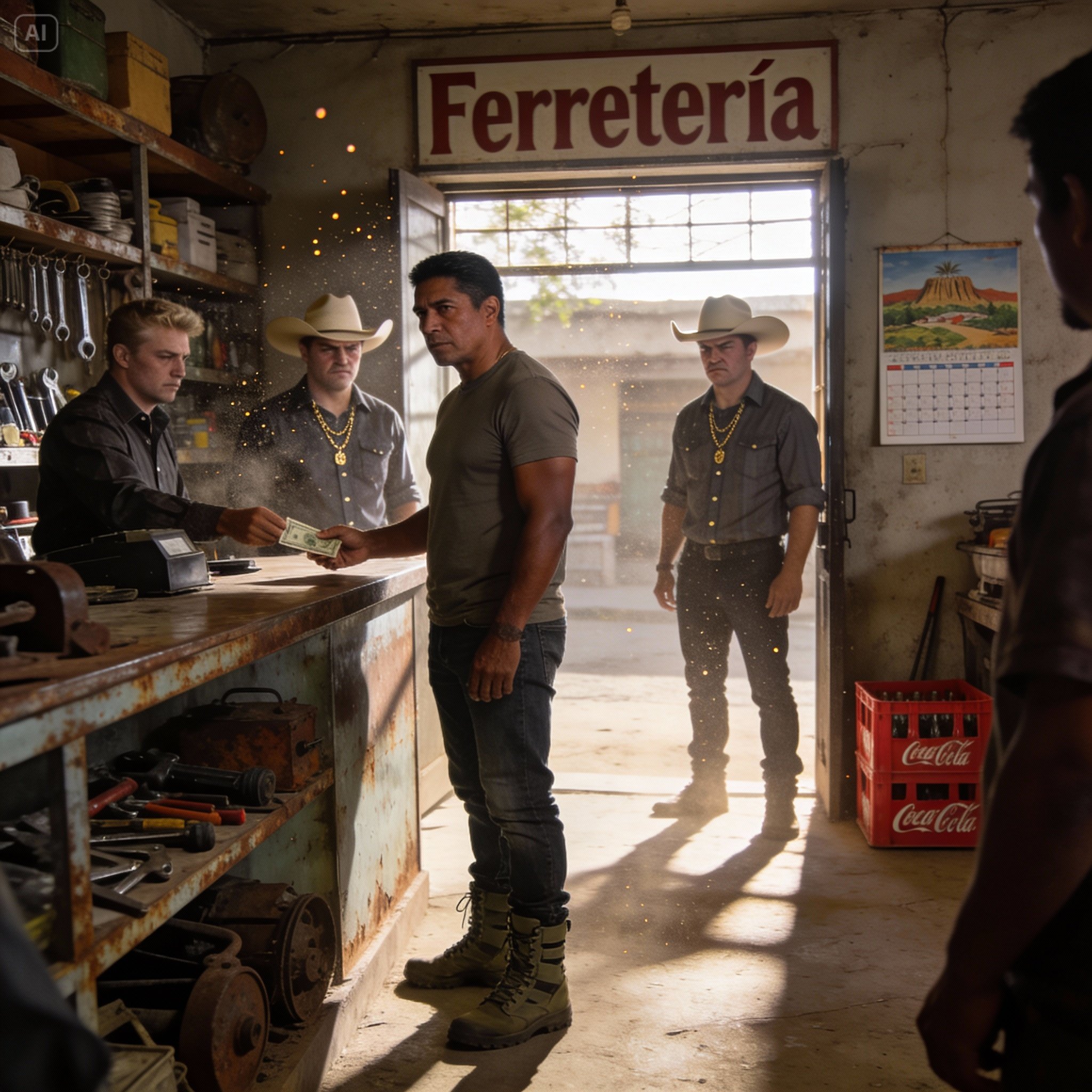 Entraron tres hombres. El aire en la ferretería se volvió denso, eléctrico.