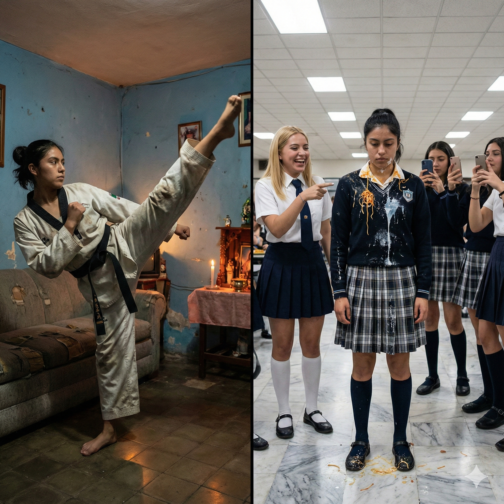 La mañana transcurrió con la habitual tortura silenciosa. En clase de Historia, cuando el profesor preguntó sobre las castas en la Nueva España, sentí la mirada de tres chicas en mi nuca. En Matemáticas, fui la única que resolvió la ecuación en el pizarrón, y el susurro de “cerebrito de barrio” recorrió la fila de atrás.