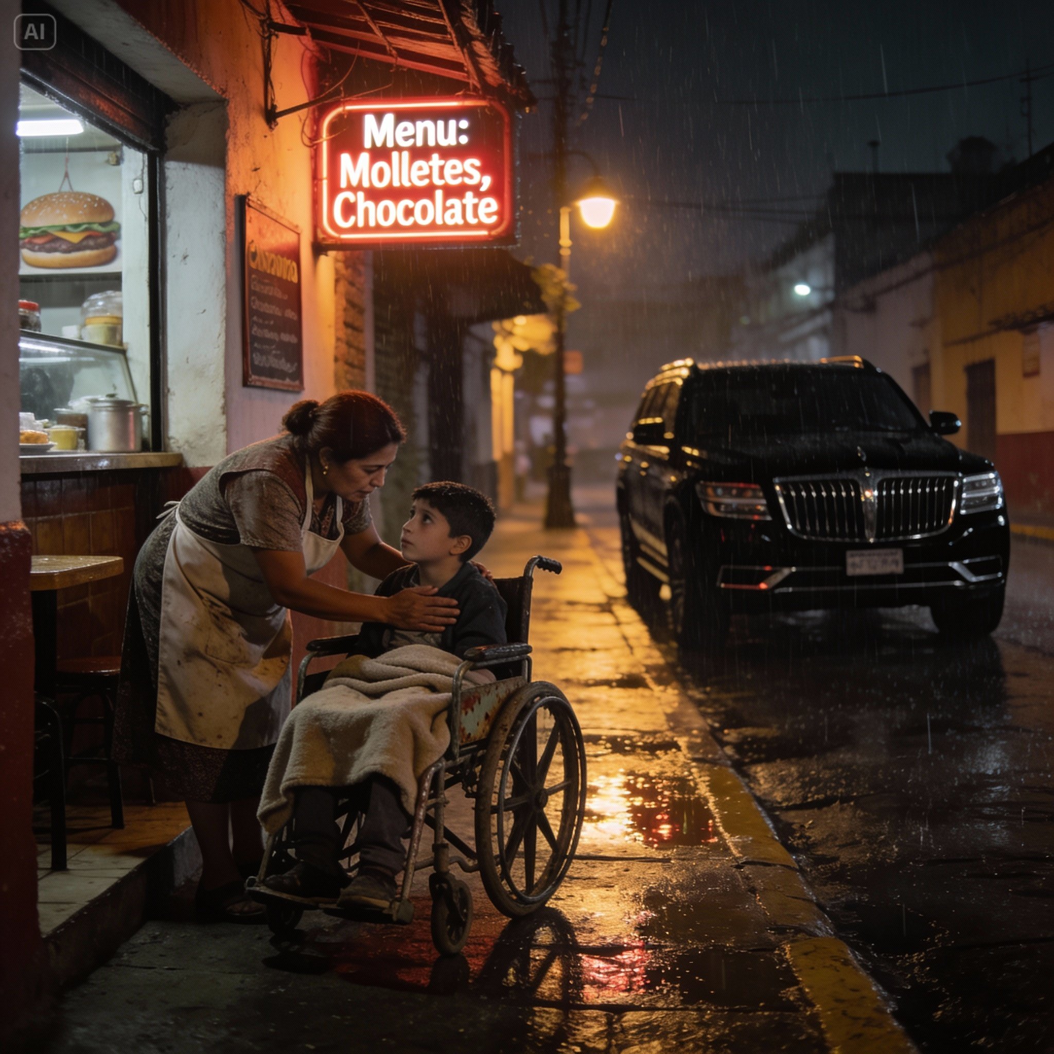 Sarita sintió una rabia pura, volcánica. ¿El chofer? ¿Su papá? ¿Qué clase de padre dejaba a su hijo en silla de ruedas bajo la tormenta mientras el chofer “daba la vuelta”? Ya habían pasado minutos desde que ella lo vio desde la ventana. Eso no era una vuelta, eso era un abandono.