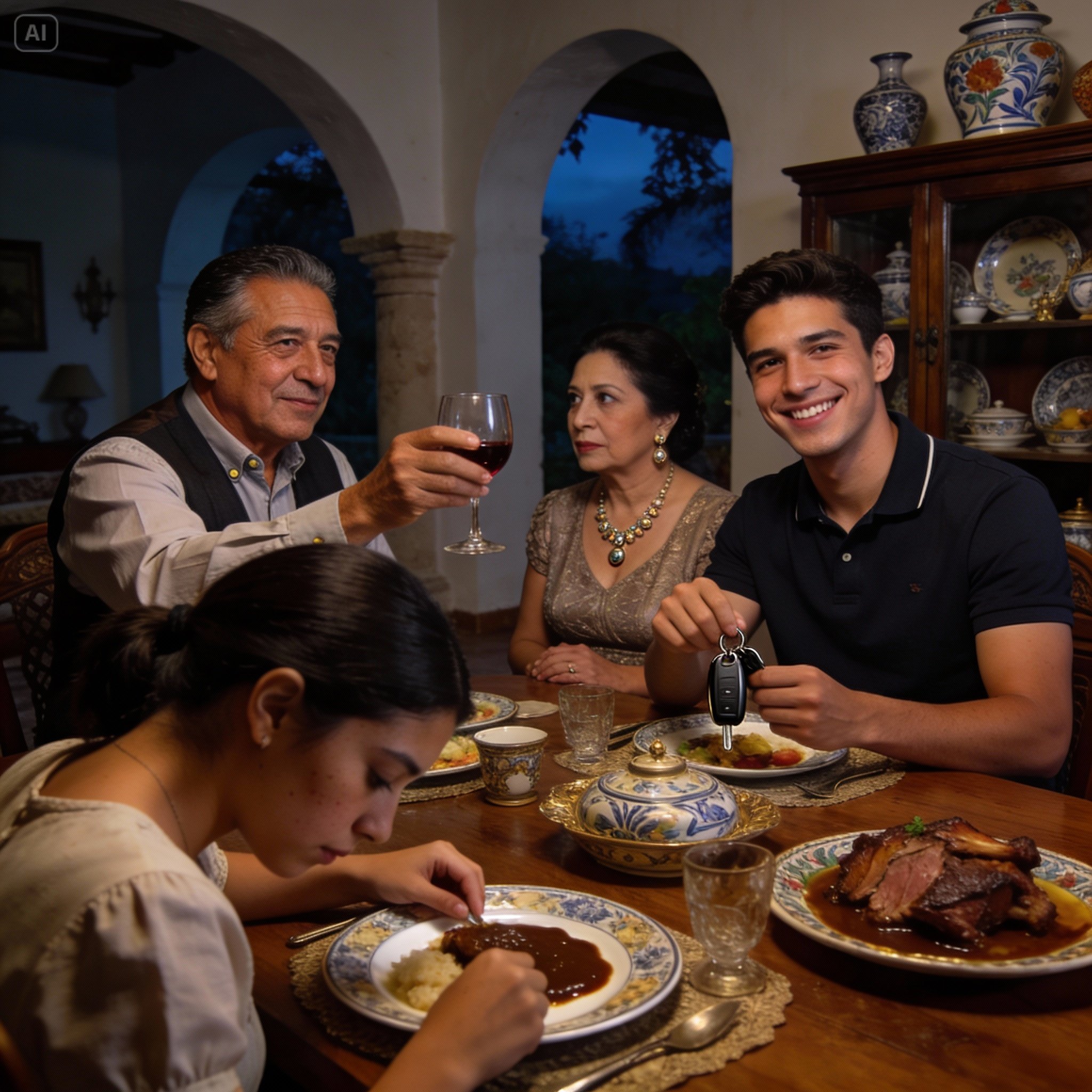 —Tonterías. Un Ramírez no anda a pie —dijo papá, sacando una llave inteligente del bolsillo de su saco. La puso sobre la mesa y la deslizó suavemente hacia Mateo.
