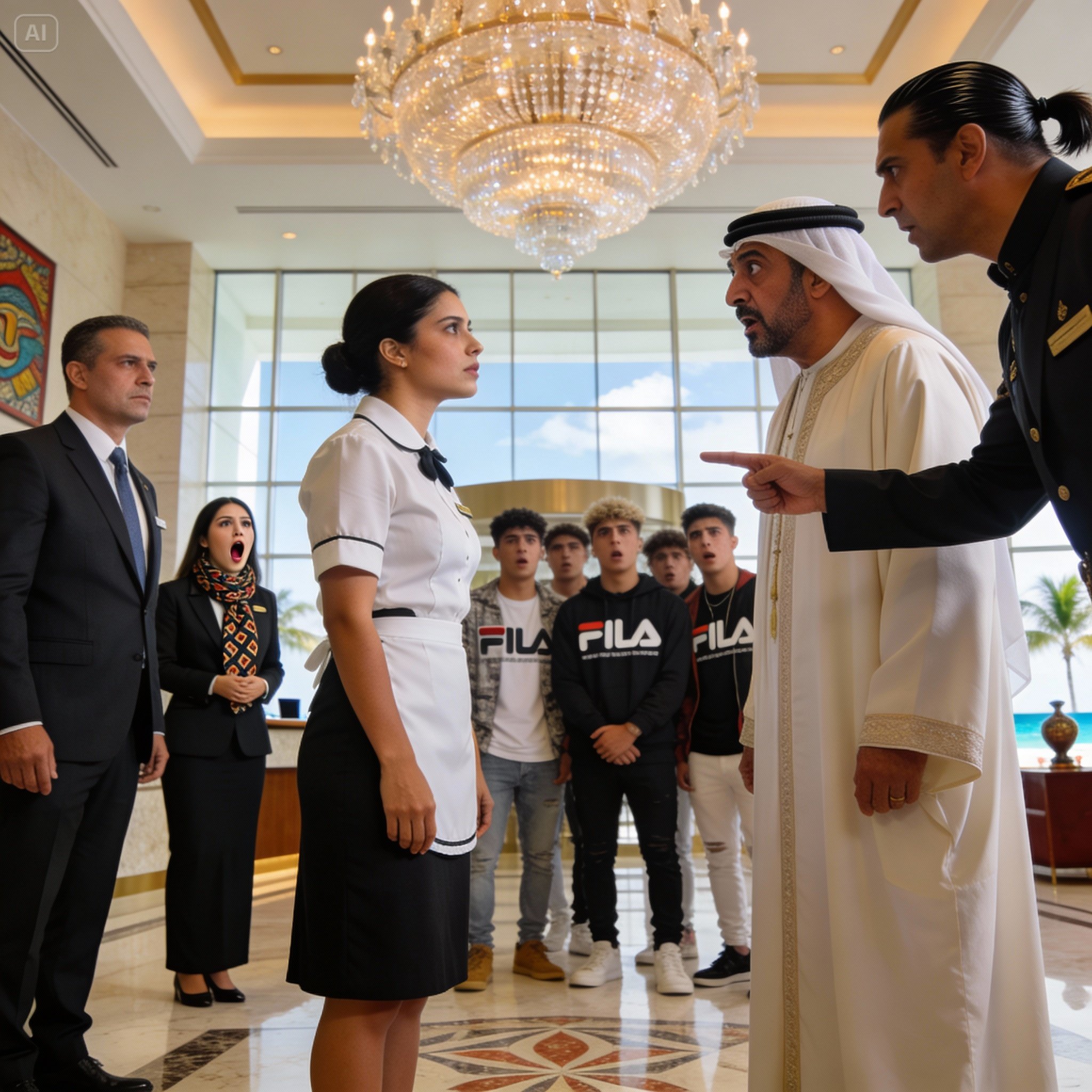 El jeque no lo miró. Su mirada pasó por encima de la cabeza calva del gerente y se posó en el centro del lobby, como si tomara posesión del espacio con un solo vistazo. Hizo un gesto casi imperceptible con la mano, y uno de sus hombres de traje respondió al instante. “Su Excelencia desea sentarse”.
