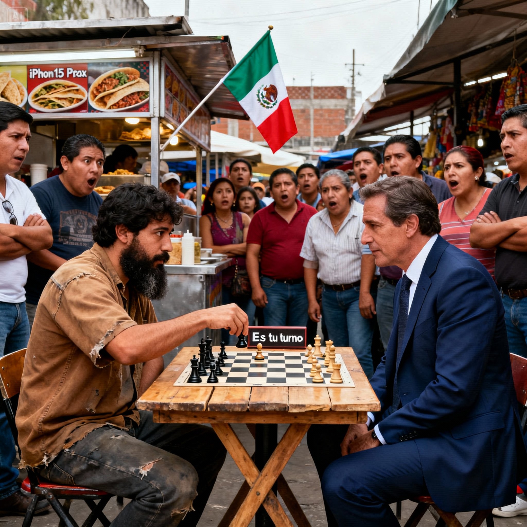 El bajo puente de la Viga estaba reventando de ruido esa mañana de viernes, un hervidero de cláxons, gritos de vendedores y el motor ronco de los microbuses. Era el pulso crudo de la Ciudad de México, un lugar donde el lujo y la miseria se rozaban sin mirarse. Pero justo en medio de ese caos, la multitud se quedó en un silencio sepulcral. Cada mirada, cada aliento, estaba clavado en un viejo tablero de ajedrez, apoyado sobre una banca de concreto desgastada, manchada por años de humedad y graffiti.