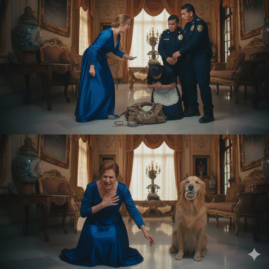 Cuando Duque abrió la boca, algo brilló intensamente al caer sobre la alfombra persa. Era el anillo. El diamante enorme de la señora Elena. Pero no venía solo. Pegado al anillo, por la saliva del perro, venía un papelito arrugado, un pedazo de papel térmico que parecía un ticket.