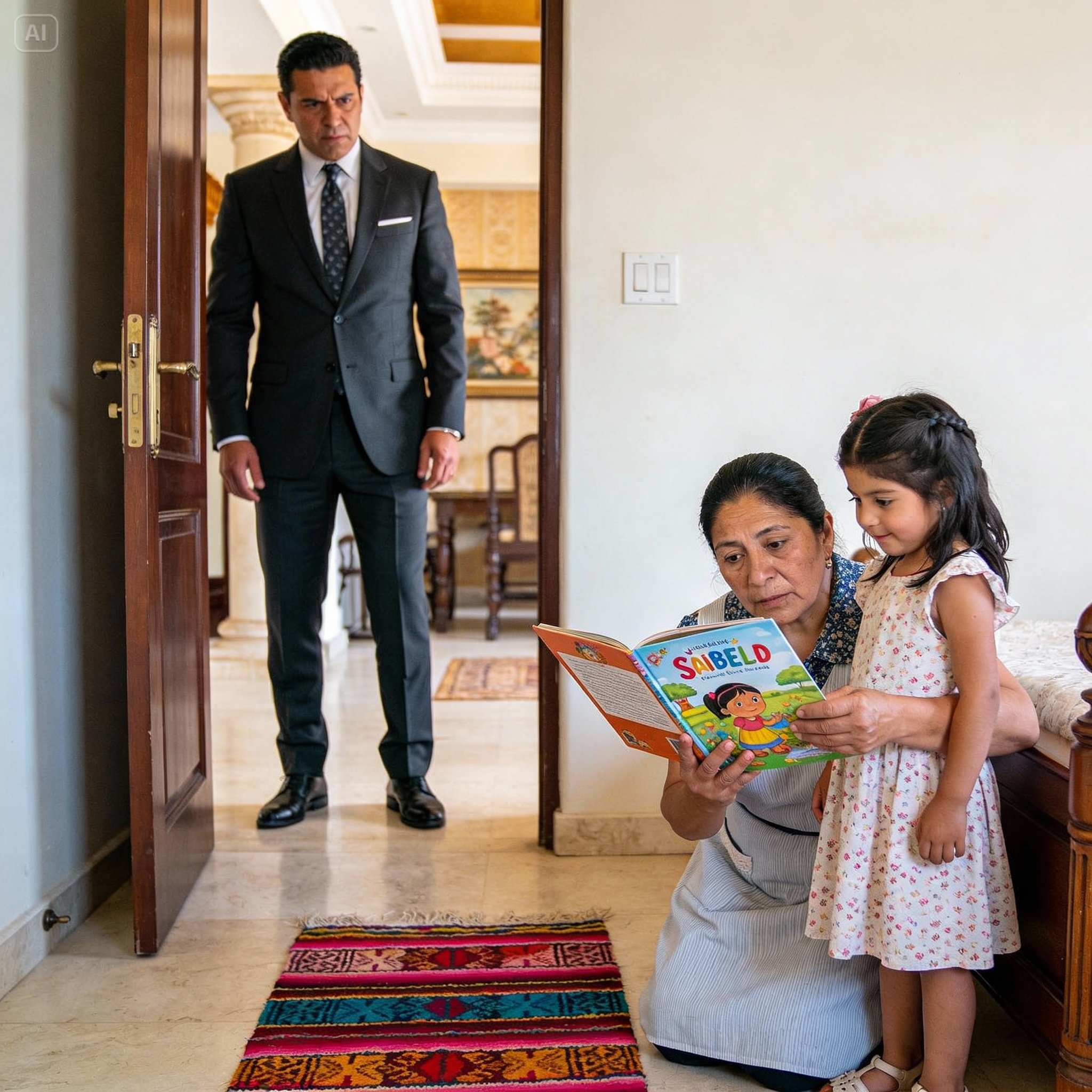 Sentada sobre la alfombra persa, cuyas grecas de seda parecían ríos de vino y oro bajo la luz dorada que se filtraba por los ventanales, sostenía un libro grueso y colorido en mi regazo. A mi lado, acurrucada contra mi costado, estaba Sofía. Su pequeña cabeza, cubierta de un cabello oscuro y liso como la seda más fina, descansaba sobre mi brazo. Su calor era un ancla, una pequeña brasa de vida en la fría inmensidad de la casa. El libro, titulado “Los Sonidos del Mundo”, era un tesoro que había rescatado de una librería de viejo en el centro de Monterrey por treinta pesos, un tesoro que había metido a escondidas en mi bolso de mandado.