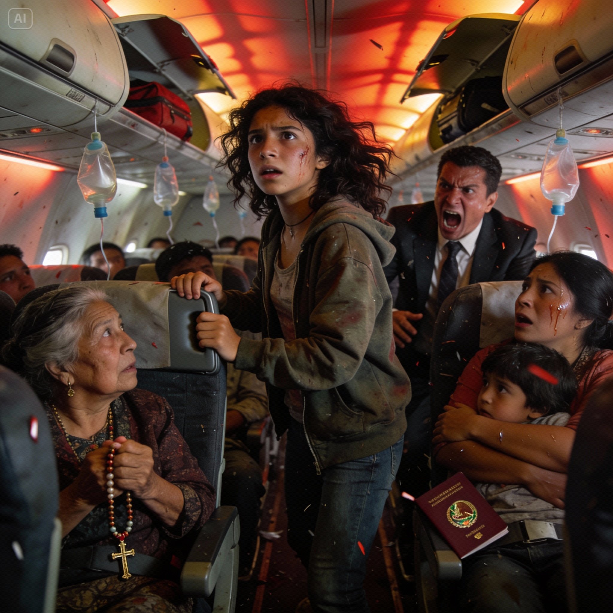 La cabina se convirtió en un espiral de caos. Gritos, rezos desesperados, ataques de tos. En algún lugar al frente, una mujer vomitó por el mareo y el miedo. Un señor mayor buscaba frenéticamente su medicación con manos temblorosas.