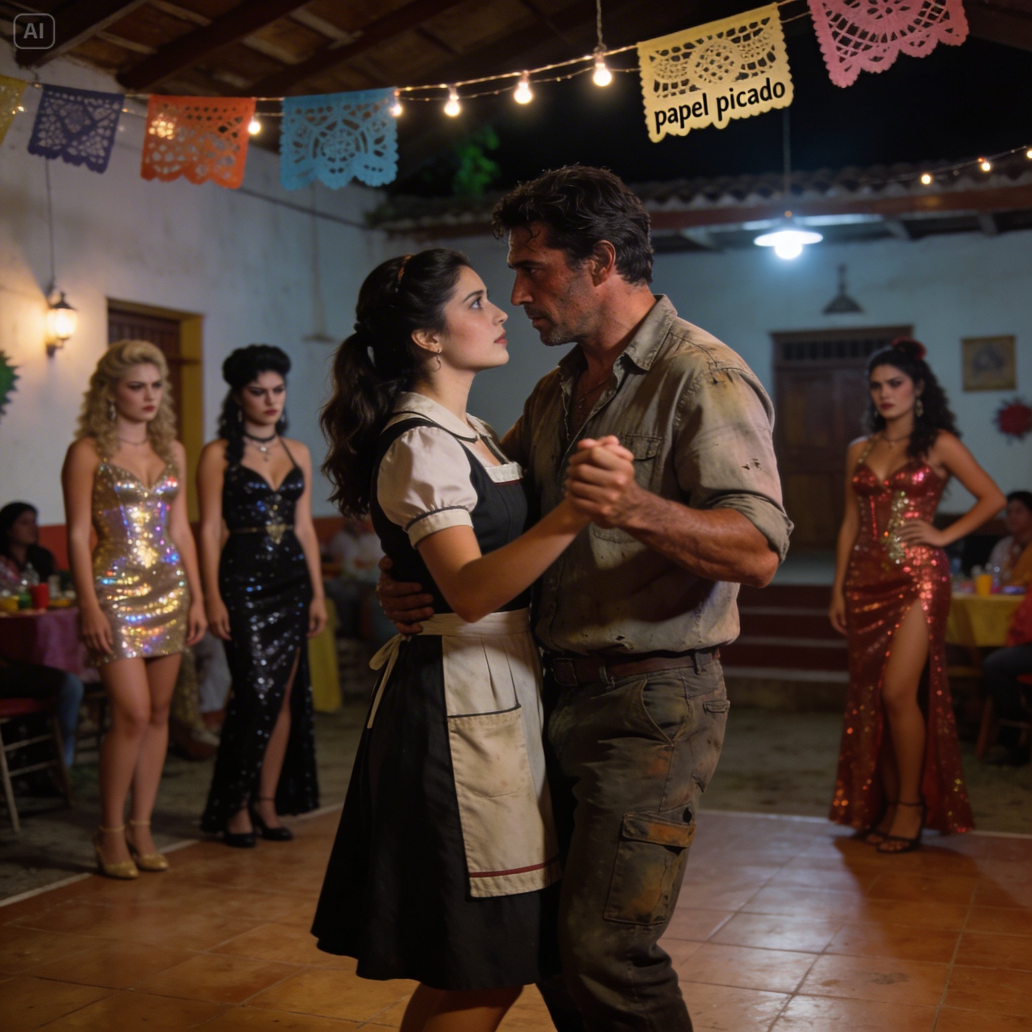 Llegaron al centro de la pista, un círculo vacío que la gente había creado a su alrededor. Justo en ese momento, la banda, como si un director invisible le diera la señal, cambió el ritmo estridente de la cumbia por una balada norteña lenta y melancólica. La voz rasposa del cantante comenzó a narrar una historia de penas y amores no correspondidos, una de esas canciones que parecen escritas con lágrimas y tequila. Ángel la tomó por la cintura con un respeto casi reverencial, y ella, tímidamente, puso una mano en su hombro. Sus cuerpos, al principio, estaban rígidos, conscientes de la hostilidad que los rodeaba.