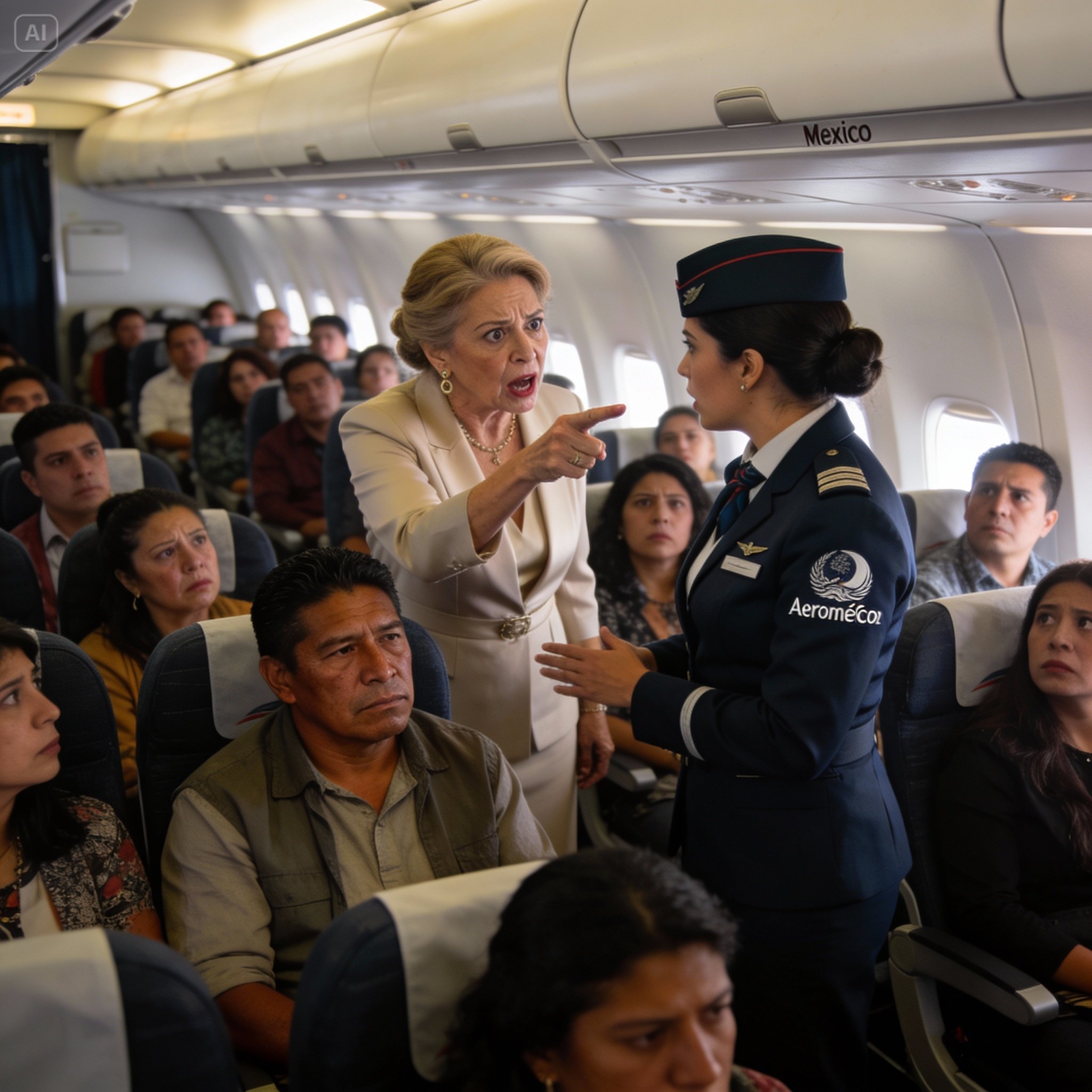 “¡MENTIRA!”, gritó una voz desde el fondo del avión. Era Sofía. Debía haber estado escuchando, agazapada en su rincón de vergüenza. “¡ES MENTIRA! ¡ES UNA TAPADERA! ¿CÓMO SABEMOS QUE ESA PLACA ES REAL? ¡CUALQUIERA PUEDE CONSEGUIR UNA DE ESAS EN TEPITO! ¡ES UN TRUCO PARA PASAR DROGA O ARMAS!”.