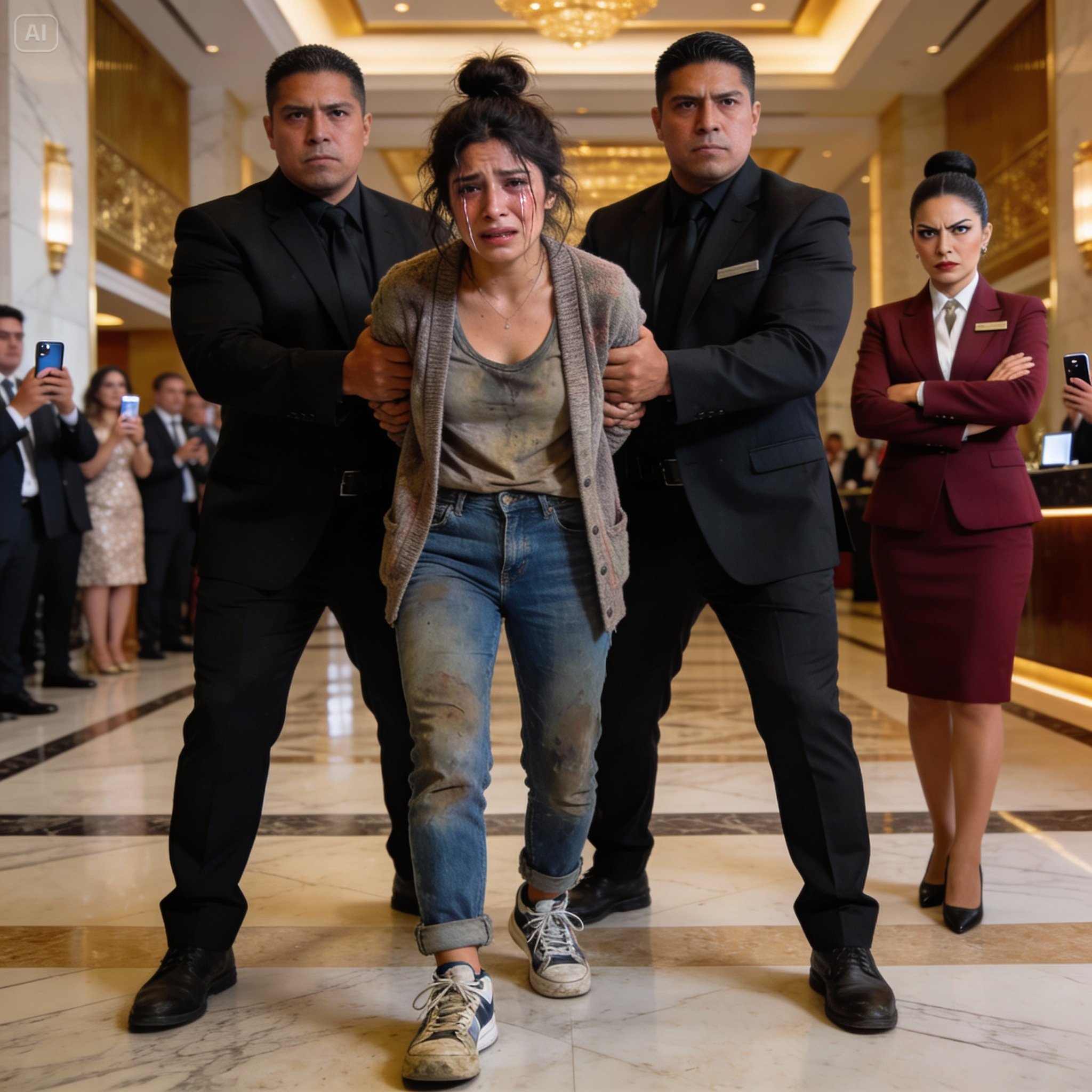 Mis manos temblaban. La humillación era pública. Ben, el botones, se reía tapándose la boca. La gente grababa. Me sentía sola contra el mundo.