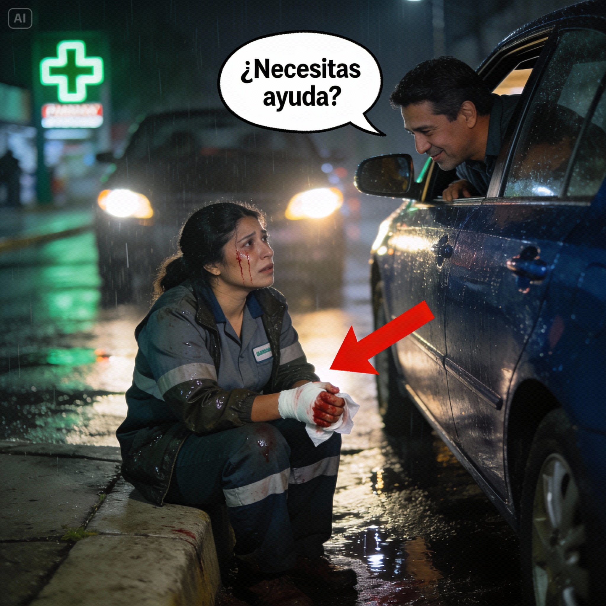 El hombre pareció confundido por un microsegundo. Sus cejas se juntaron ligeramente, pero luego, al ver mi estado —temblando como perro callejero, con la mano herida y la cara lavada en llanto—, su expresión se suavizó. Asintió levemente, casi con timidez.