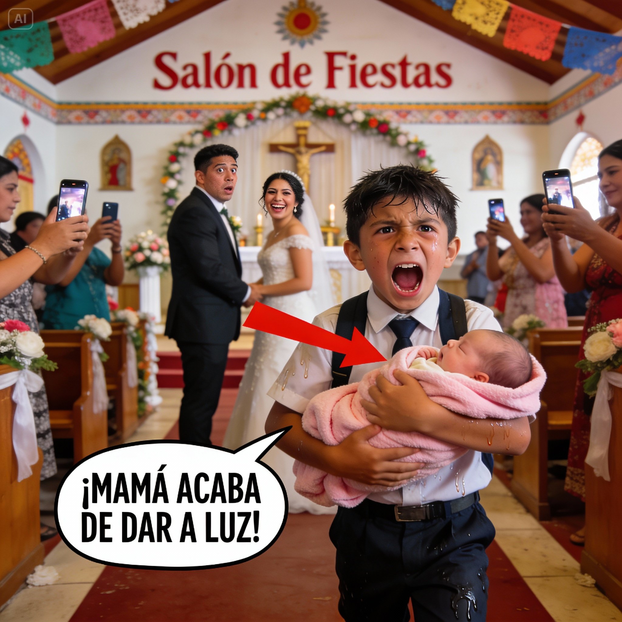 Los invitados empezaron a susurrar. —¿Ese no es el hijo de Benjamín? —¿Qué hace aquí? —¿Y qué trae en los brazos? —¡Virgen santa, es un bebé!