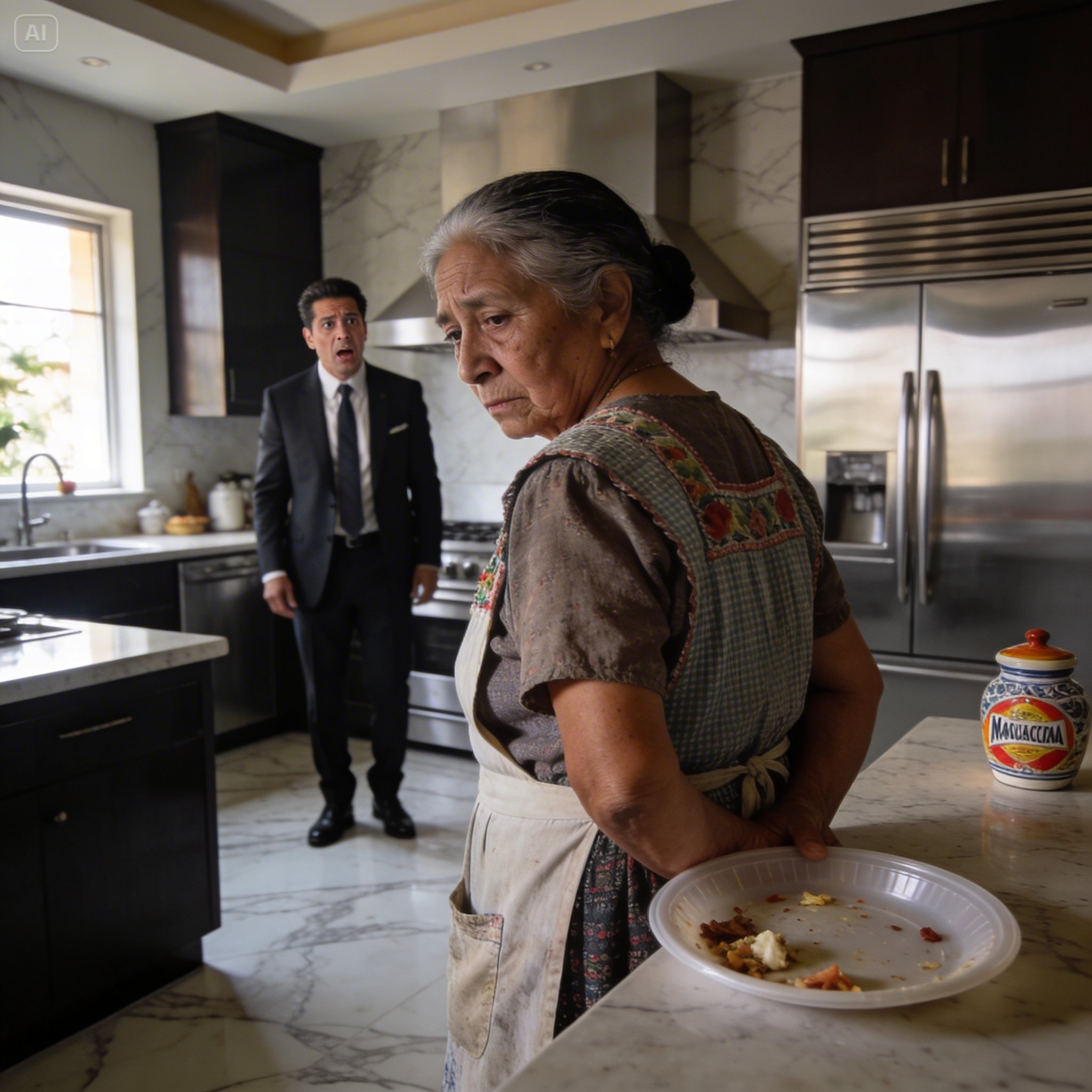 —Le juro por mi madre santa que no robé nada de la alacena, don Alejandro. Eso… eso estaba en el bote de lo que sacaron ayer de la fiesta. El chef dijo que ya no servía. Yo… yo solo lo agarré porque… porque me dio pena que se tirara.