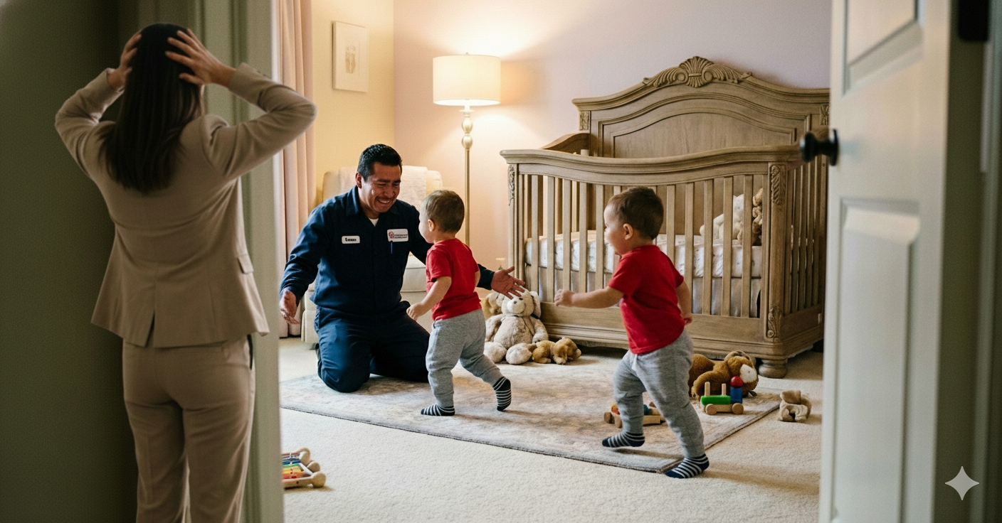 Me resigné a las máquinas, a las enfermeras caras y a los diagnósticos fríos. Pero una mañana, el silencio se rompió. Escuché una voz pequeña, frágil, casi un susurro: “Papá”. Me quedé petrificada. Mi bolso de diseñador cayó al piso de mármol. En el cuarto de las niñas, arrodillado sobre la alfombra, estaba Caleb, el hombre de la limpieza con su uniforme azul desgastado. Mis hijas, que jamás habían movido los labios, lo miraban con una luz que yo nunca les pude dar.