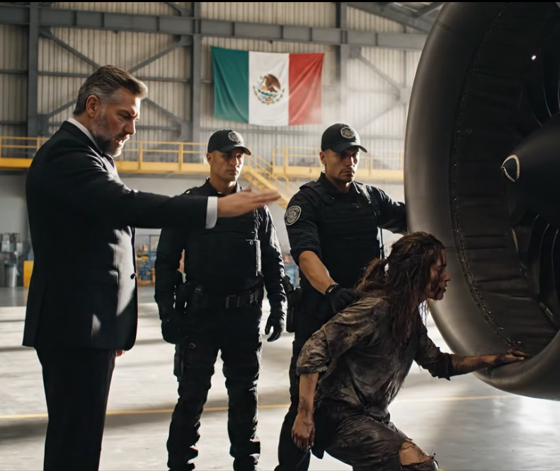 El motor fue sacado del hangar. Afuera, el sol de la tarde bañaba la pista del AICM con un dorado cálido. La tripulación se movió rápidamente. Los cables se conectaron. Los conos de seguridad se colocaron. La chica se hizo a un lado, las manos juntas, observando, lista.