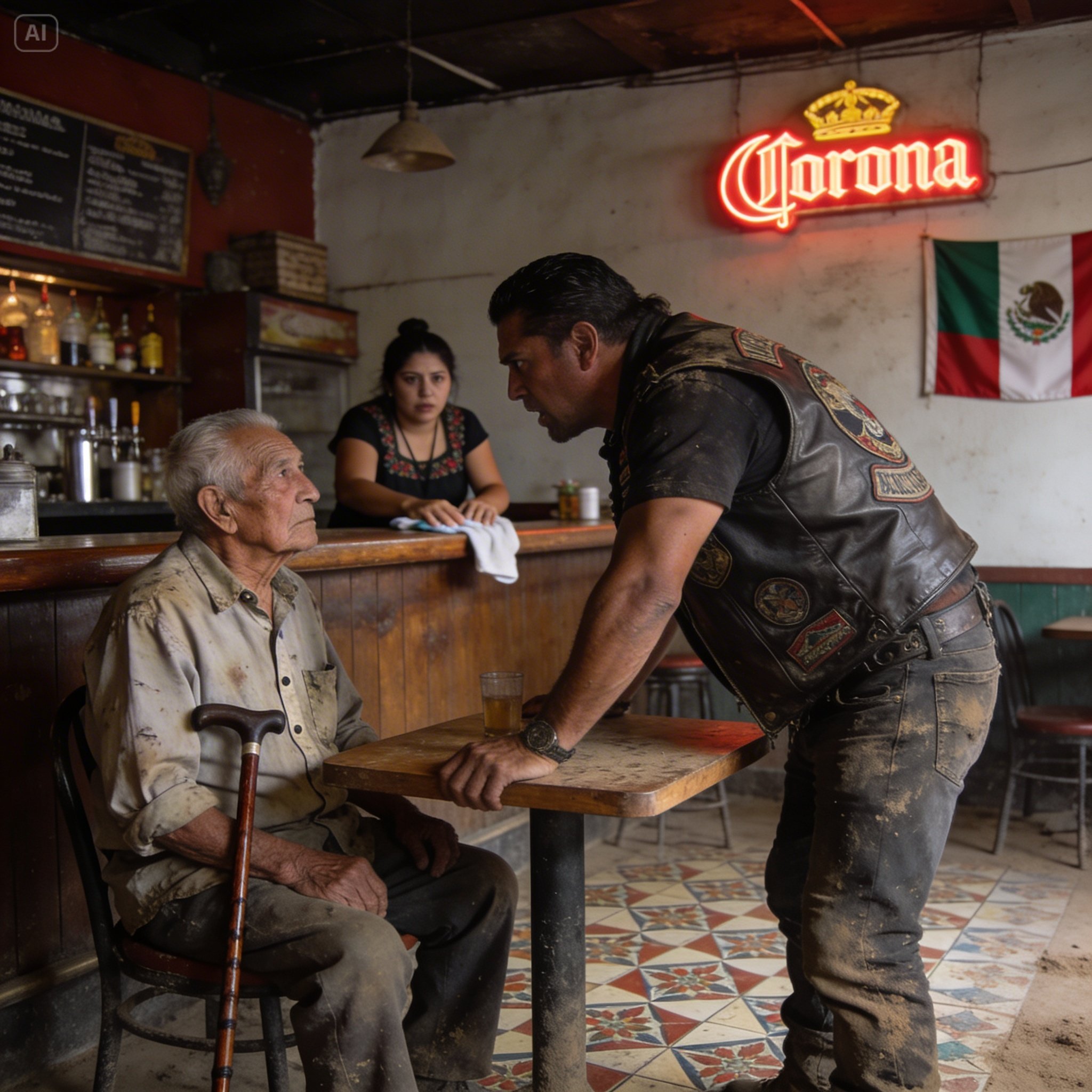 —Mírate nada más, qué patético te ves, ruco —escupió El Mugres. Su voz retumbó en las paredes de adobe, asegurándose de que hasta el último rincón del local lo escuchara—. Deberías estar en tu asilo, meciéndote en una silla, tomando caldito de pollo y no quitando espacio en una cantina para hombres de verdad. ¿No te da vergüenza dar tanta lástima?