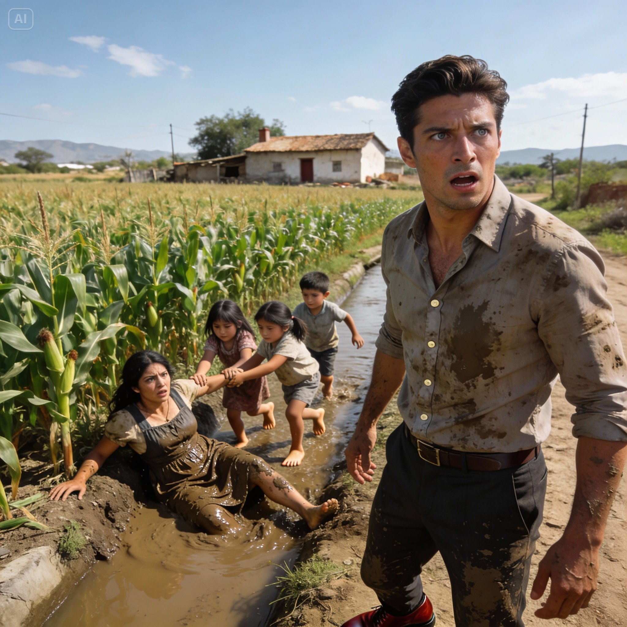 Tres pares de pies diminutos, sucios y veloces, corrieron por el campo. No fue una carrera desordenada; fue un movimiento unificado, una carga de caballería en miniatura con un solo propósito. Las dos niñas, dos torbellinos de rizos oscuros y piernas flacuchas, saltaron primero de la caja. Habían estado riendo, un sonido que había flotado en el aire segundos antes, pero ahora sus rostros estaban contraídos por la preocupación. El niño las siguió de cerca, más metódico, más serio, sosteniendo en su mano un pequeño trapo de cocina que, momentos antes, usaba para limpiar los granos dorados del elote.