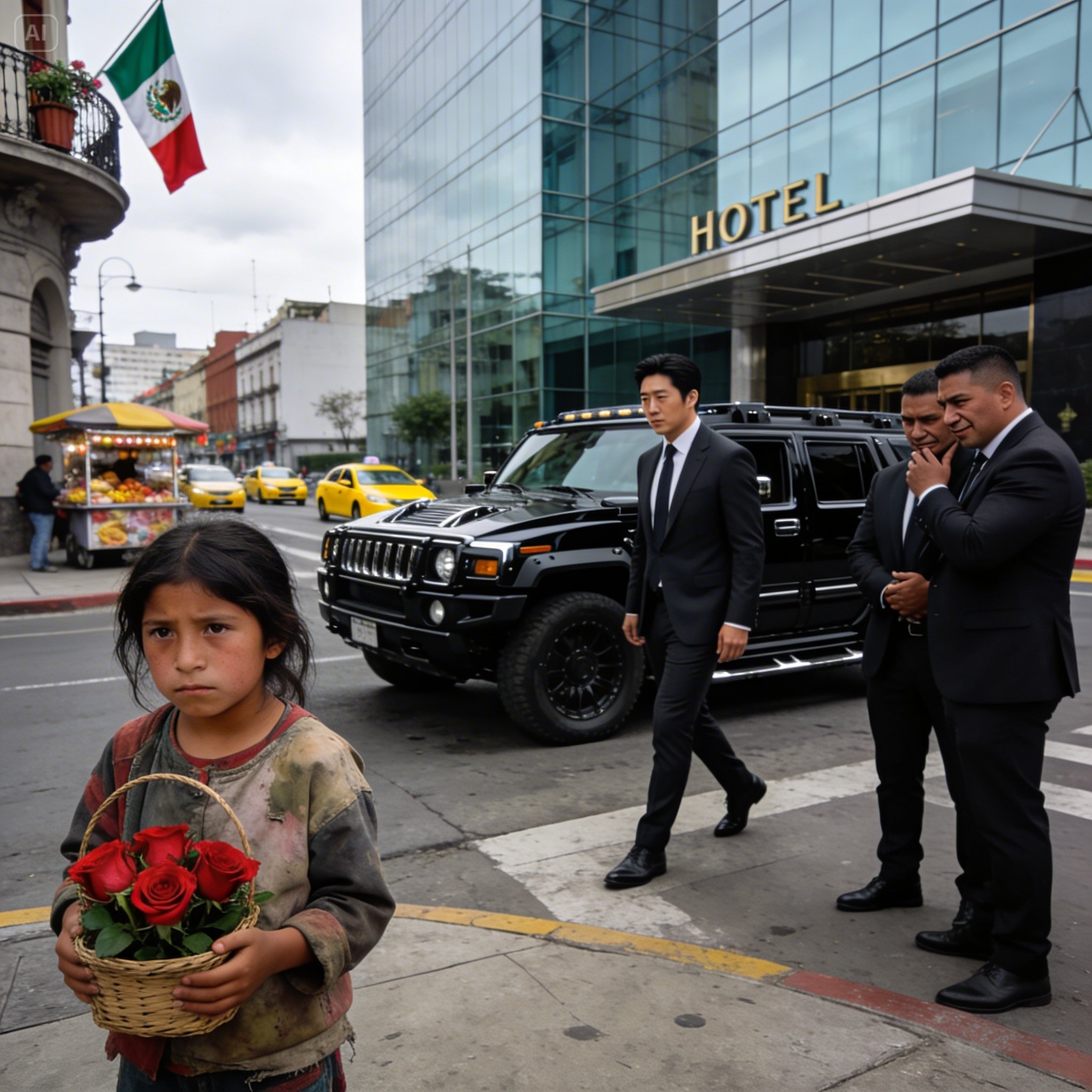 Solo era otra niña morenita de la calle. Un estorbo visual en su paisaje de lujo. Una mancha en su postal de la metrópoli moderna. Estaba ahí parada, con una canasta de mimbre desgastada, intentando vender rosas a veinte pesos para poder llevar algo de cenar a casa.