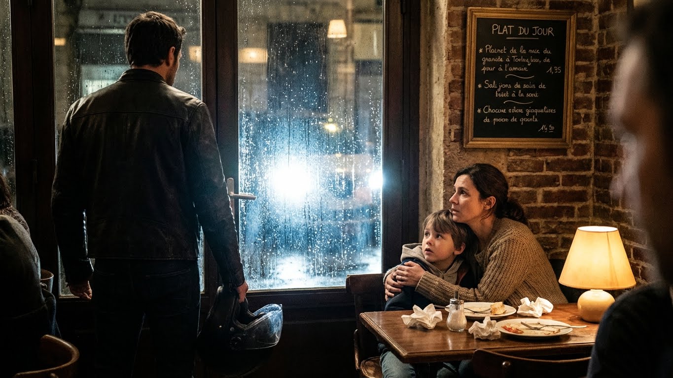 Je m’appelle Thierry. J’étais assis au fond du “Relais des Monts”, un vieux restaurant routier qui sentait la friture froide et le tabac incrusté dans les murs depuis les années 90. Devant moi, un café noir qui avait refroidi, tout comme mon cœur il y a dix ans. Mon casque de moto posé sur la banquette en skaï rouge déchirée était mon seul compagnon. En cette veille de Noël, alors que la France entière déballait des cadeaux et mangeait du foie gras, moi, je fixais mon reflet dans la vitre sombre.