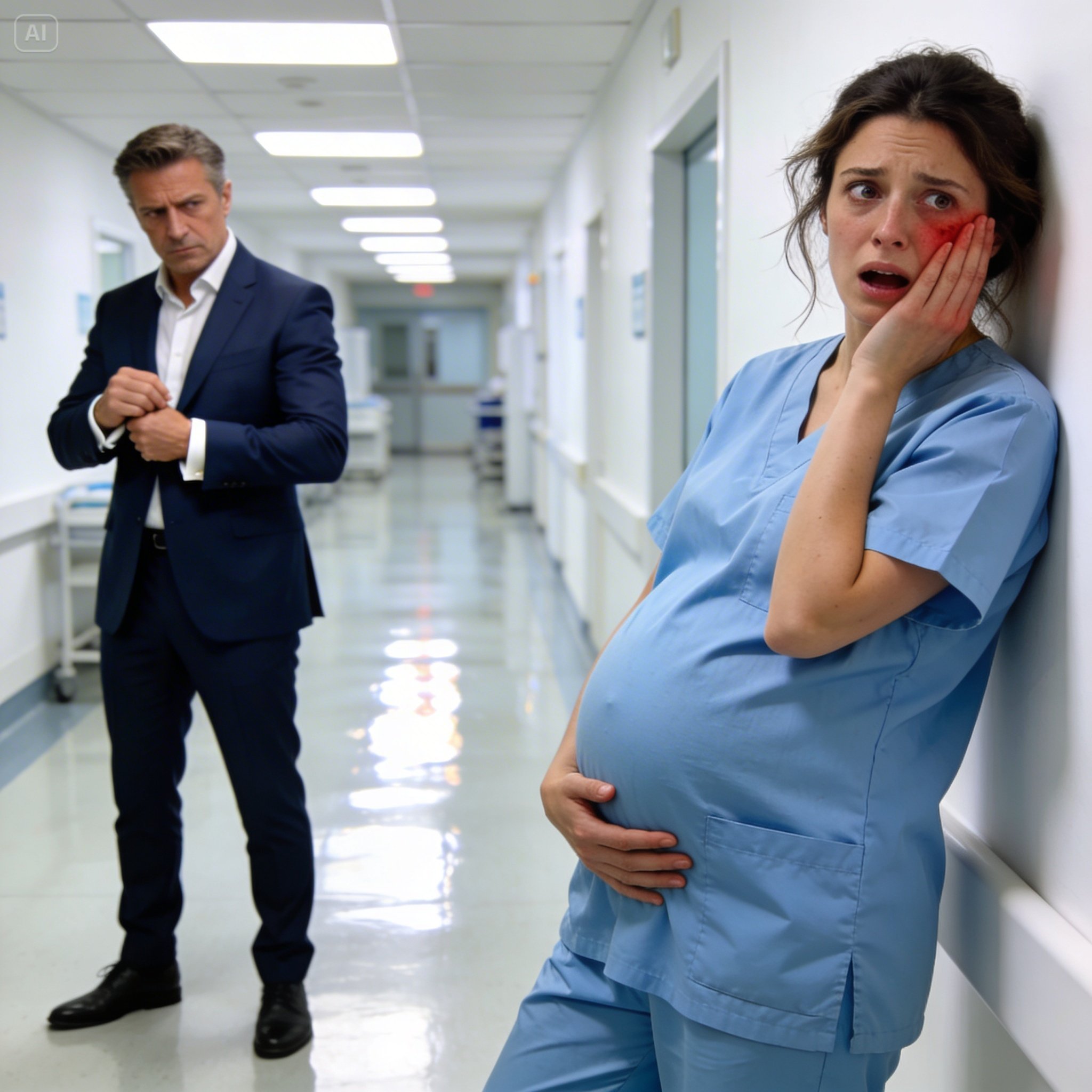 Ma tête a basculé sur le côté, mes lunettes volant sur le sol tandis qu’un voile noir masquait ma vision. J’ai percuté le mur, ma main se plaquant instinctivement sur mon ventre dans un geste de protection désespéré. Un silence de mort a envahi l’étage, les médecins et les infirmières restant pétrifiés devant la scène.