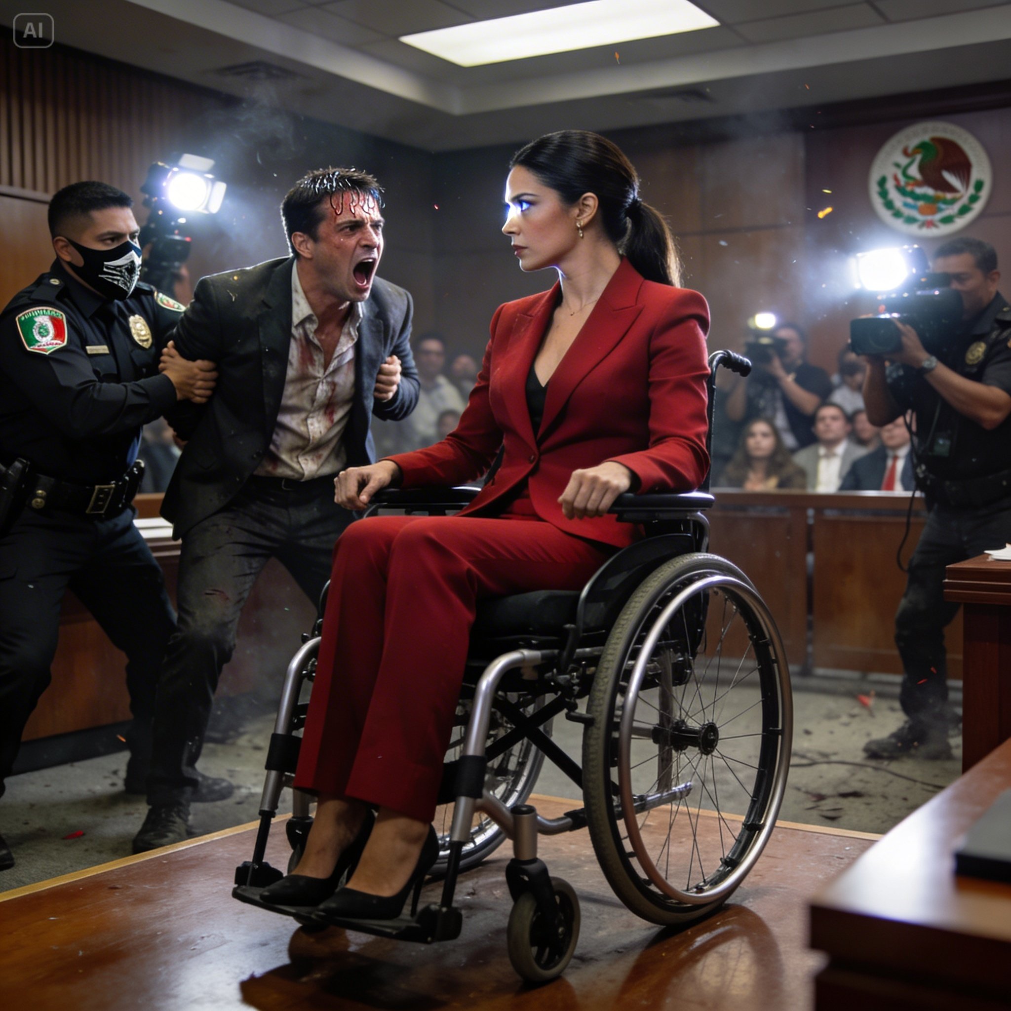 El caos estalló. Rodrigo saltó de su silla, gritando “¡Mentirosa! ¡Es una trampa!”, antes de que dos alguaciles lo sometieran y lo esposaran. El juez declaró la sesión terminada y ordenó la detención inmediata de Rodrigo bajo cargos de intento de homicidio, fraude y conspiración.