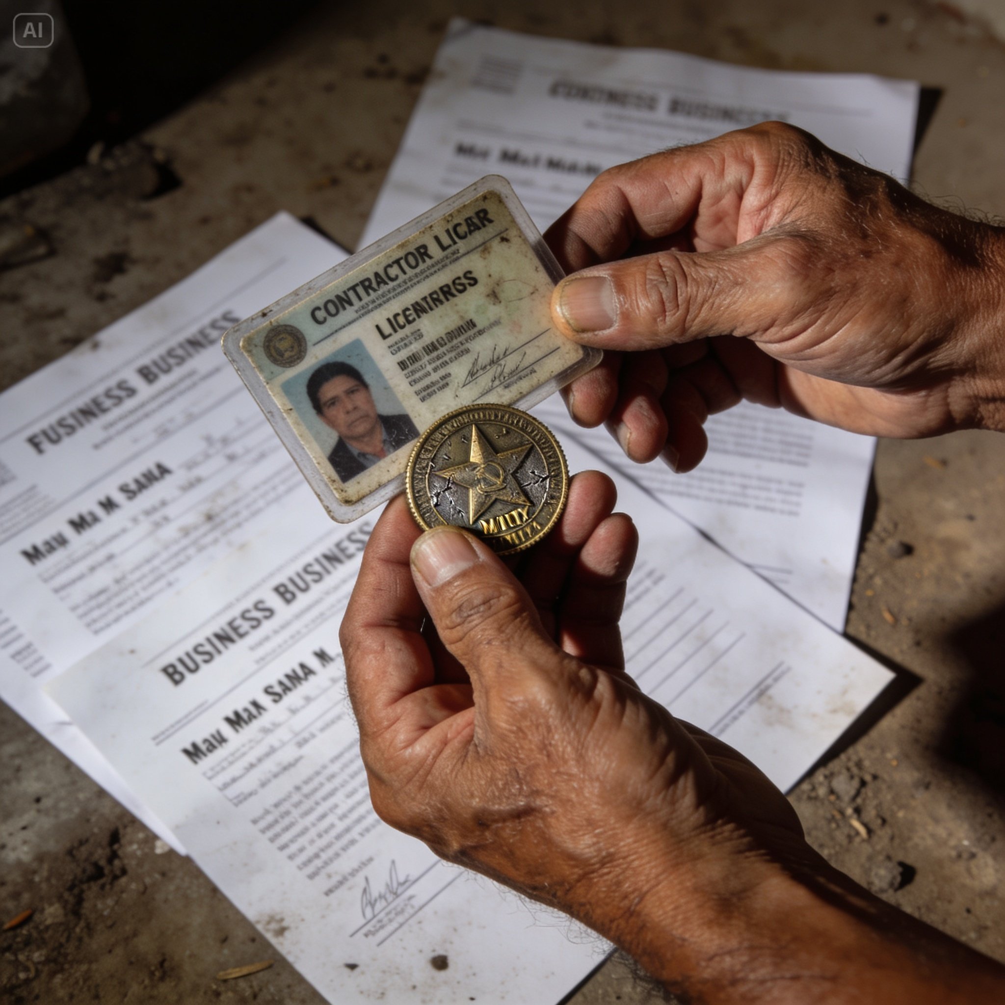 —Uso fraudulento de credenciales de contratista, falsedad en la declaración de sociedades comerciales y uso no autorizado de números de licencia. Es un delito grave, Kenji. Te guiaré con el papeleo, no te preocupes. Para el mediodía tendrás todo lo que necesitas para empezar.