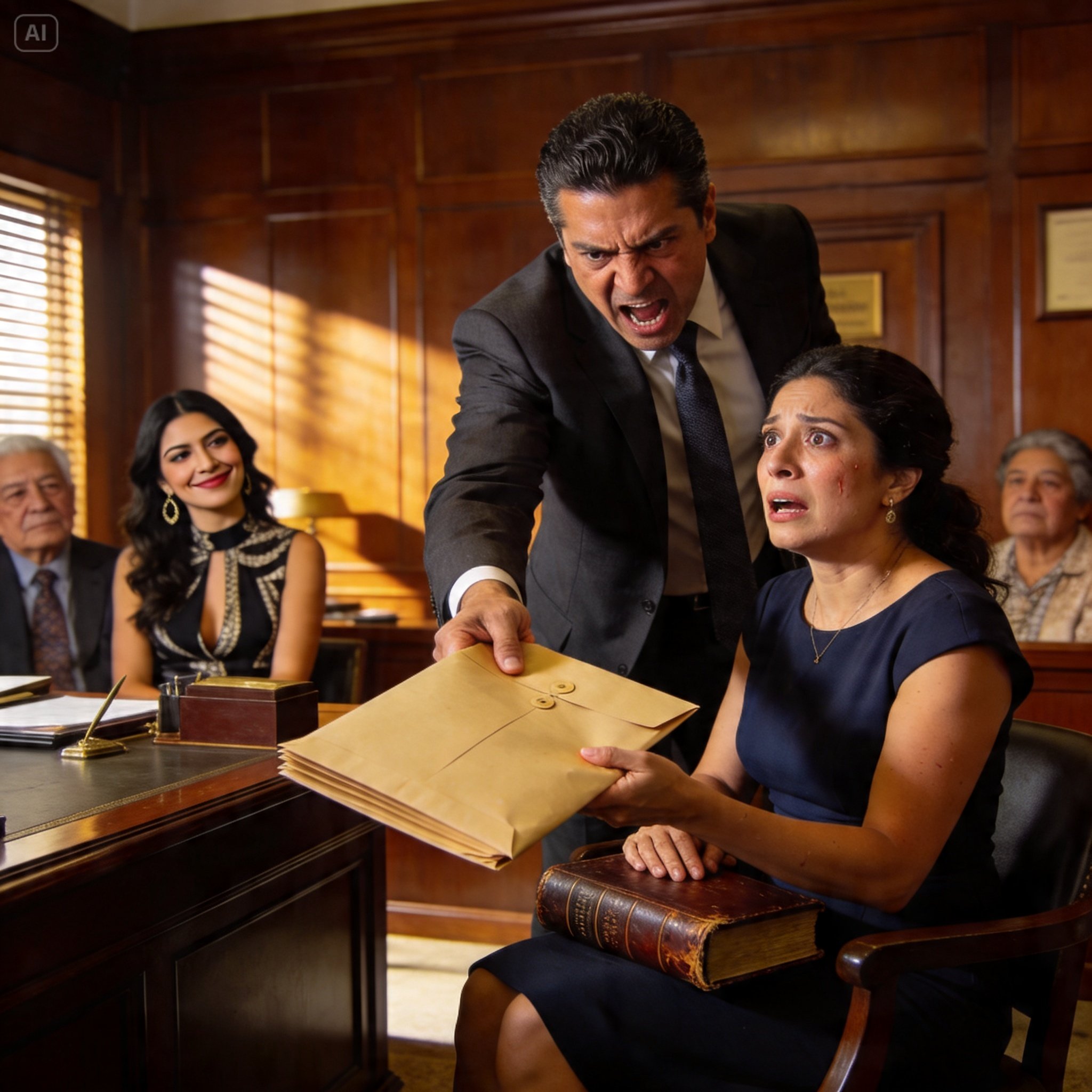 “Señora Elena, ¿no es verdad que usted se aprovechó de la demencia de su suegro para que le firmara esos papeles a su favor?”, preguntó con una sonrisa cínica.