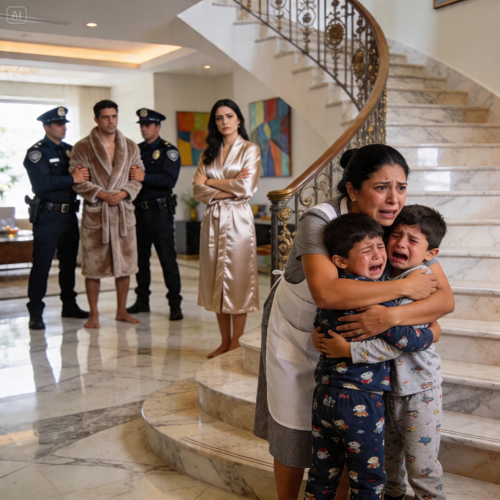 “Por favor, no los dejes solos”, le supliqué a María con la voz totalmente rota mientras me arrastraban hacia la patrulla. Ella asintió en silencio con una mirada profunda, demostrando una humanidad inmensa que la mujer de mi vida no tuvo. Lo que yo no sabía, mientras me hundía en el asiento trasero de la policía, era que la humilde empleada de mi casa escondía el secreto que pronto destruiría a la verdadera mente criminal.