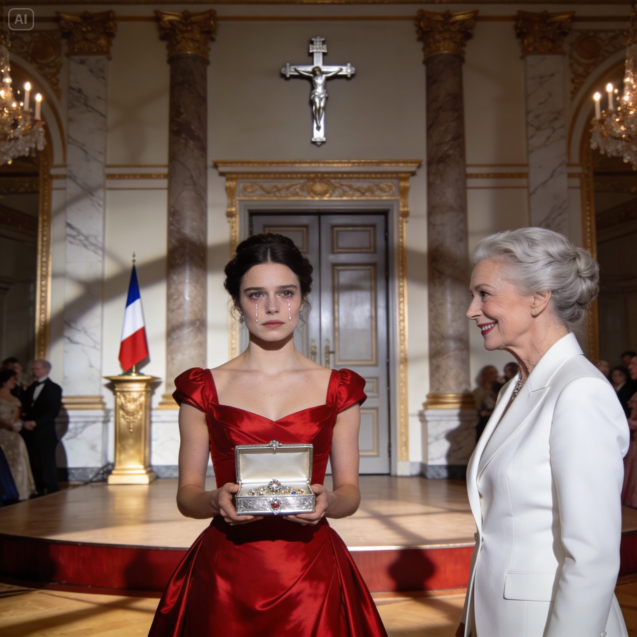 Elle sort de derrière le pupitre un coffret en argent massif, orné d’un ruban blanc immaculé. Elle me fait signe d’approcher. Mes jambes sont lourdes, comme si je marchais dans de la mélasse. Chaque pas vers cette estrade est un pas vers le peloton d’exécution. Les visages sur mon passage sont flous : des masques de curiosité morbide, de mépris mal dissimulé.