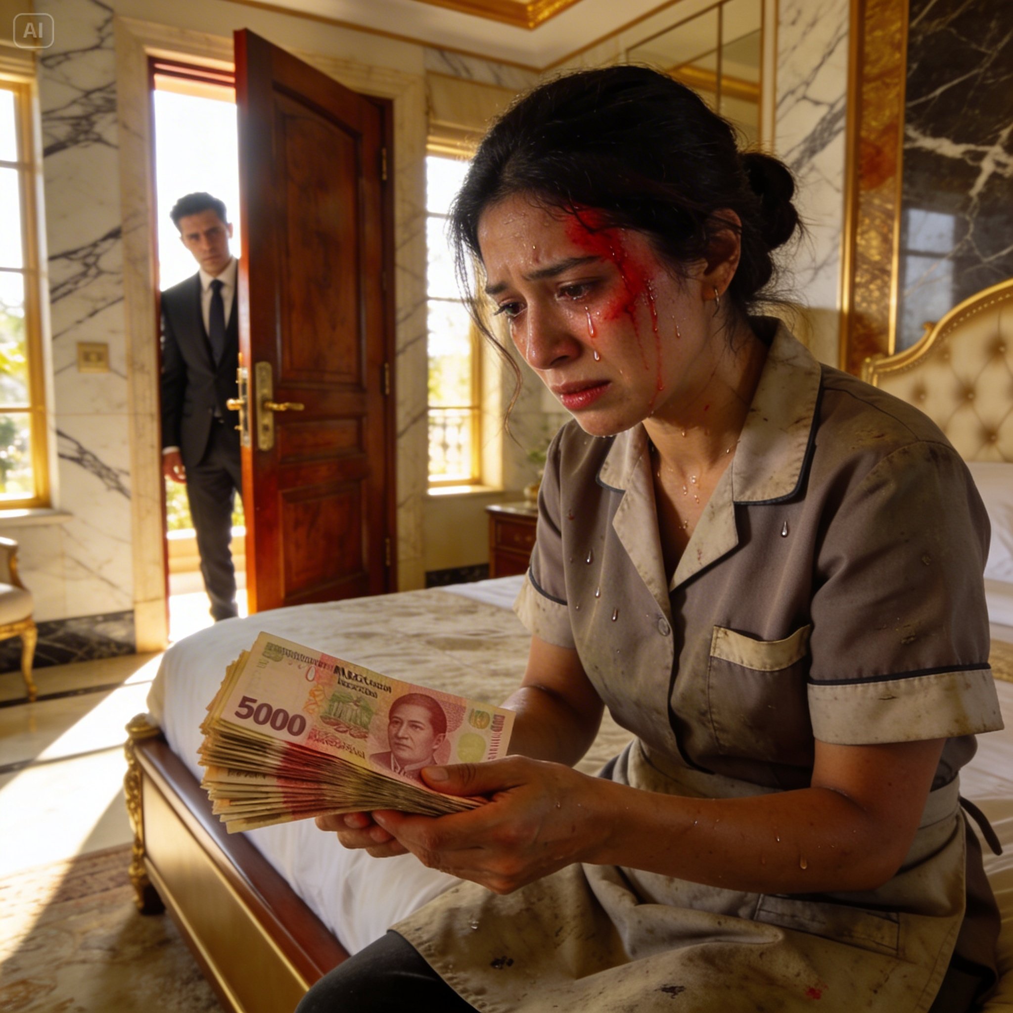 Sentí una vergüenza tan profunda que quise que el suelo me tragara en ese mismísimo instante, ahí mismo, frente a sus zapatos de piel reluciente. Mis dedos se aflojaron y el dinero cayó sobre la colcha de seda con un golpe sordo, como si pesara toneladas de culpa. Me cubrí la cara con las manos, incapaz de sostenerle la mirada a ese hombre que me acababa de atrapar en el peor momento de mi vida.