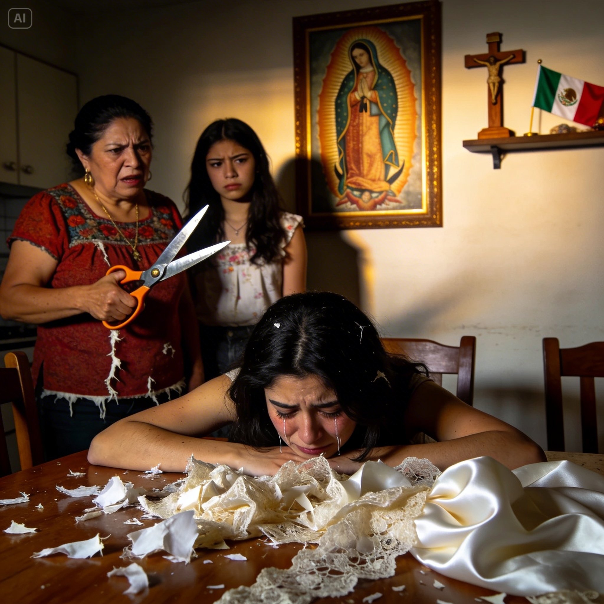 Ahí estaba la mesa del comedor, esa donde cenábamos todos los domingos. Y encima, esparcido como si fuera basura, estaba mi vestido. Pero ya no era un vestido. Eran pedazos de tela blanca, jirones de encaje de Chantilly que habían sido cortados con una saña que no puedo explicar.