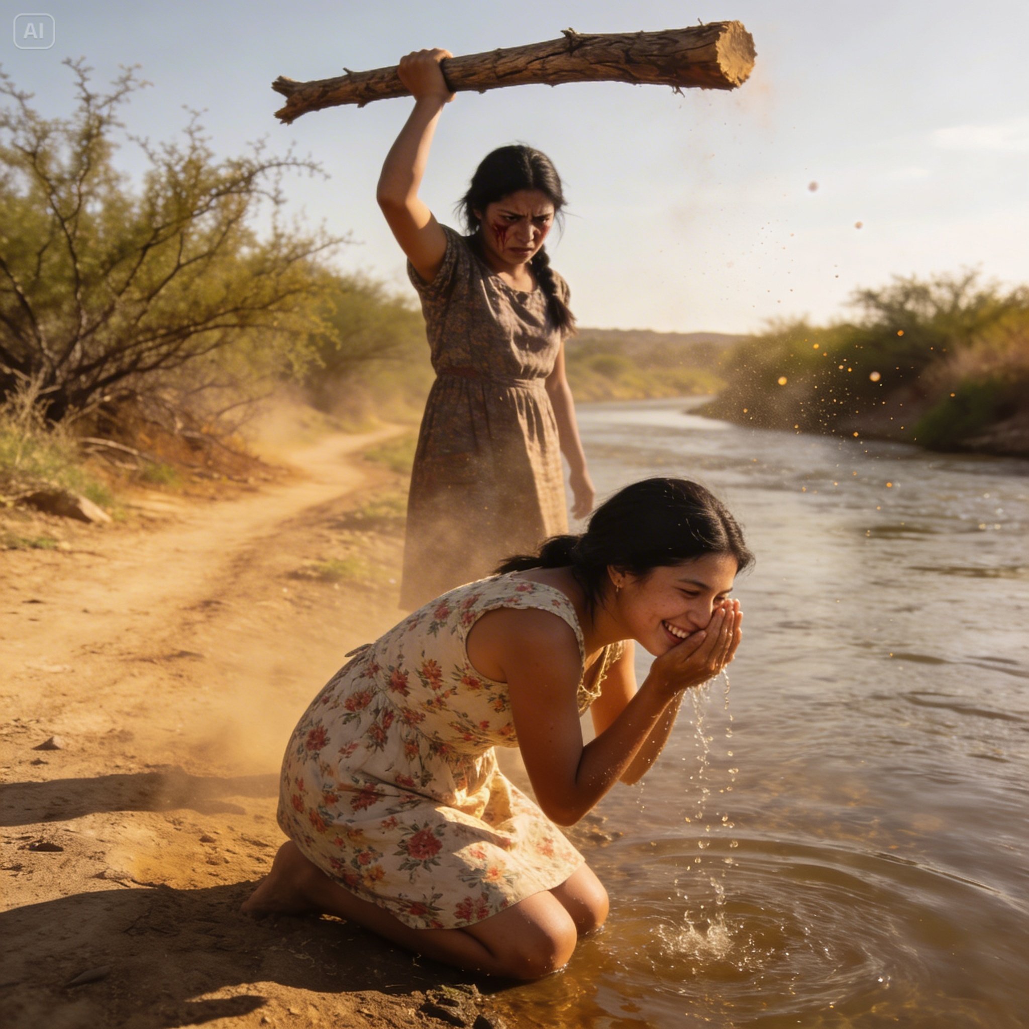 A la mañana siguiente, llegó a mi casa con una sonrisa radiante y me invitó al río para despedirnos de nuestra soltería como siempre lo hacíamos. Caminamos por el sendero lleno de matorrales, platicando de los planes de la boda y de cómo yo me la llevaría conmigo al Norte algún día. Al llegar a la orilla del agua, me agaché para refrescarme la cara, dándole la espalda sin sospechar absolutamente nada.