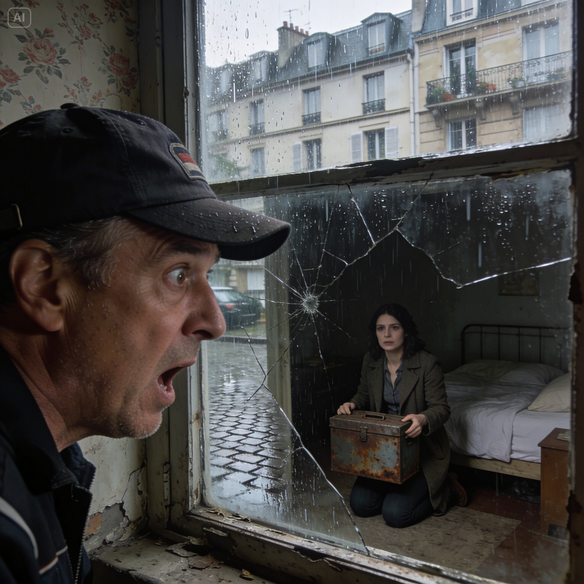 Elle a frappé à une porte délinguée avec un code précis : deux coups secs, une pause, puis un dernier coup sourd qui a résonné dans mon torse. La porte s’est entrouverte sur un couloir sombre et elle a disparu à l’intérieur, me laissant seul sous l’averse glaciale. Je me suis approché de la fenêtre dont le carreau était fêlé, retenant mon souffle pour ne pas être repéré.
