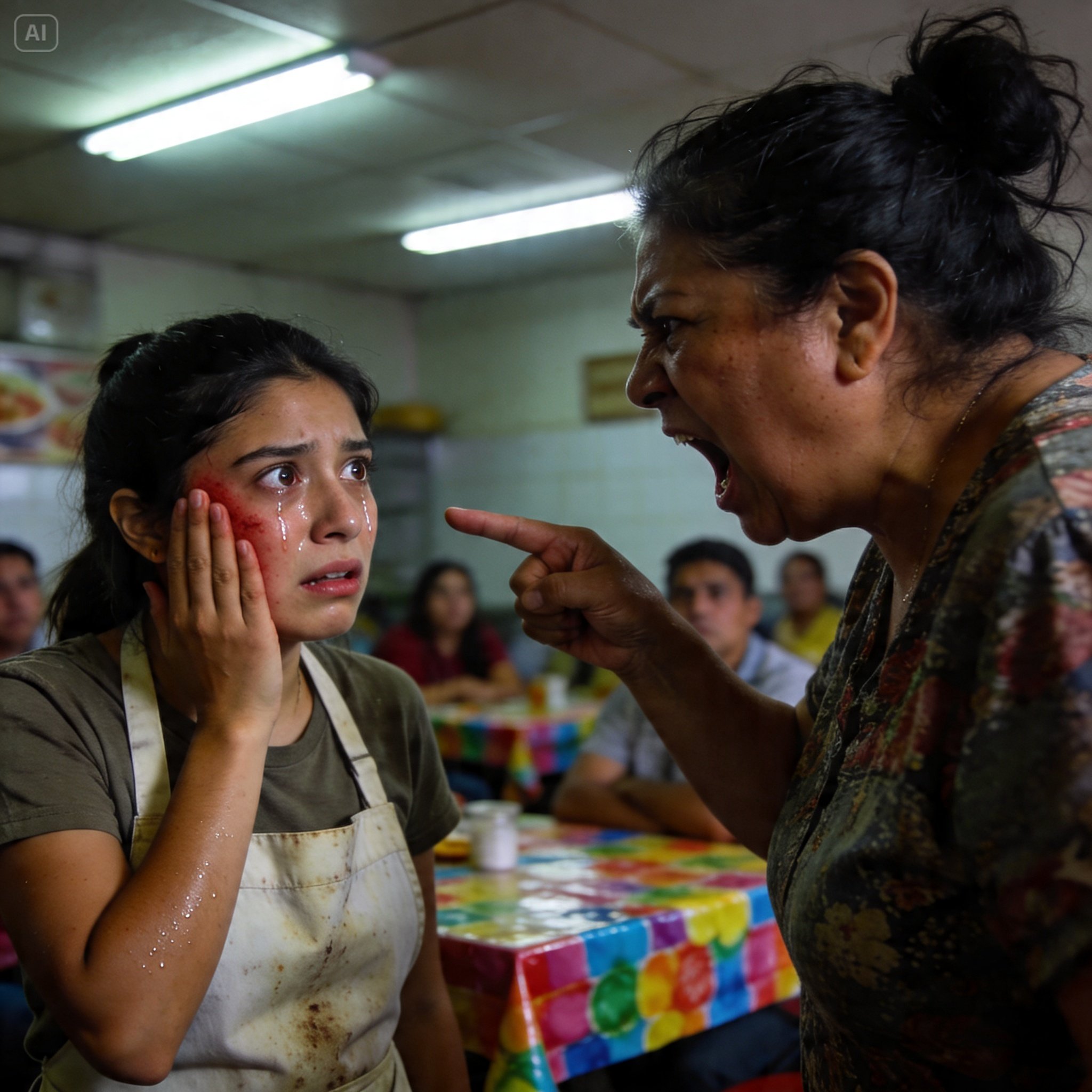 El golpe fue tan fuerte que me zumbó el oído y el silencio en la fonda se volvió pesado, casi insoportable. Los clientes dejaron de comer y el único sonido era el de mi propia respiración agitada y el goteo de una llave mal cerrada. Doña Magda me empezó a insultar, llamándome “zorra” y diciendo que seguro me había ido a revolcar con cualquier tipo en el mercado.