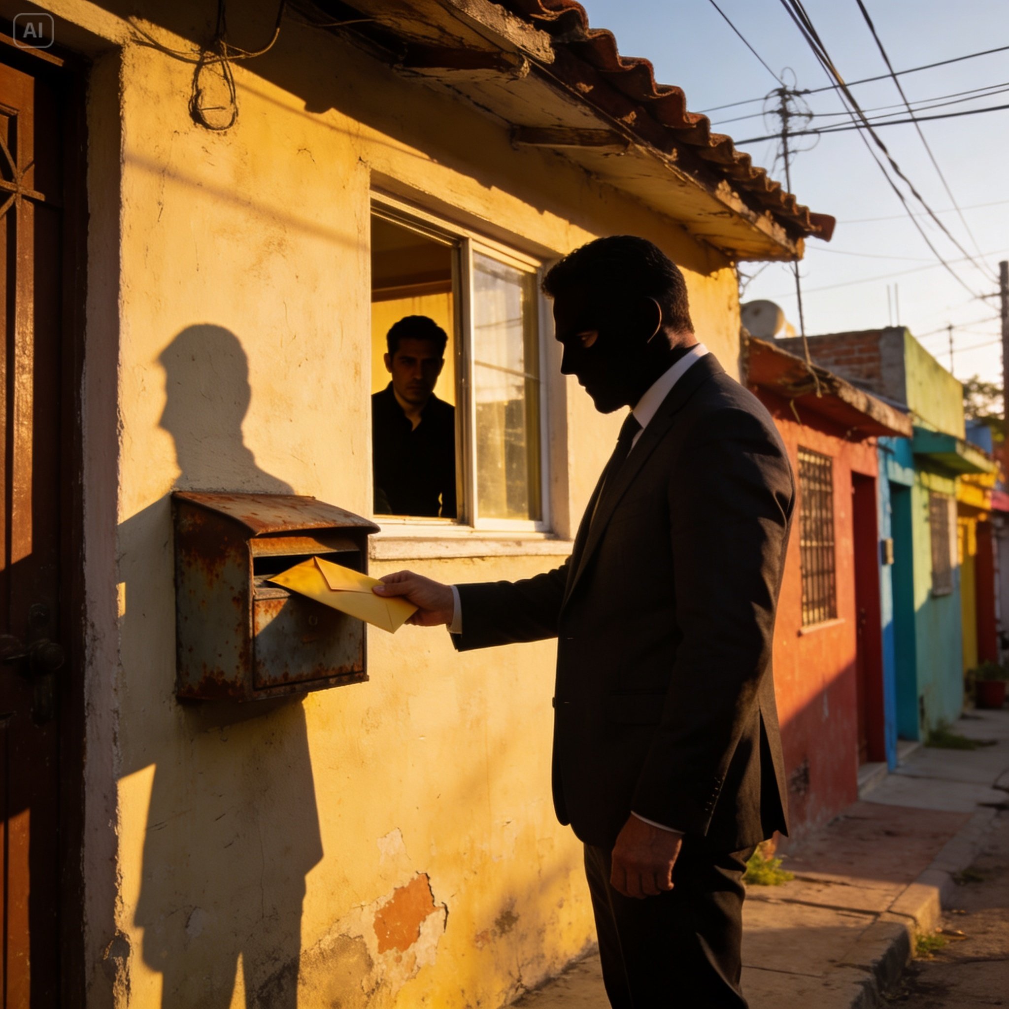 Un hombre corpulento con traje bajó del vehículo. No miró a ningún lado más que a nuestra ventana, como si supiera que yo estaba ahí. Dejó un sobre amarillo en el buzón y, con la misma calma siniestra, se subió al auto y desapareció. El corazón me martillaba en el pecho; sabía que no era una visita casual. Eran ellos. Me habían encontrado.