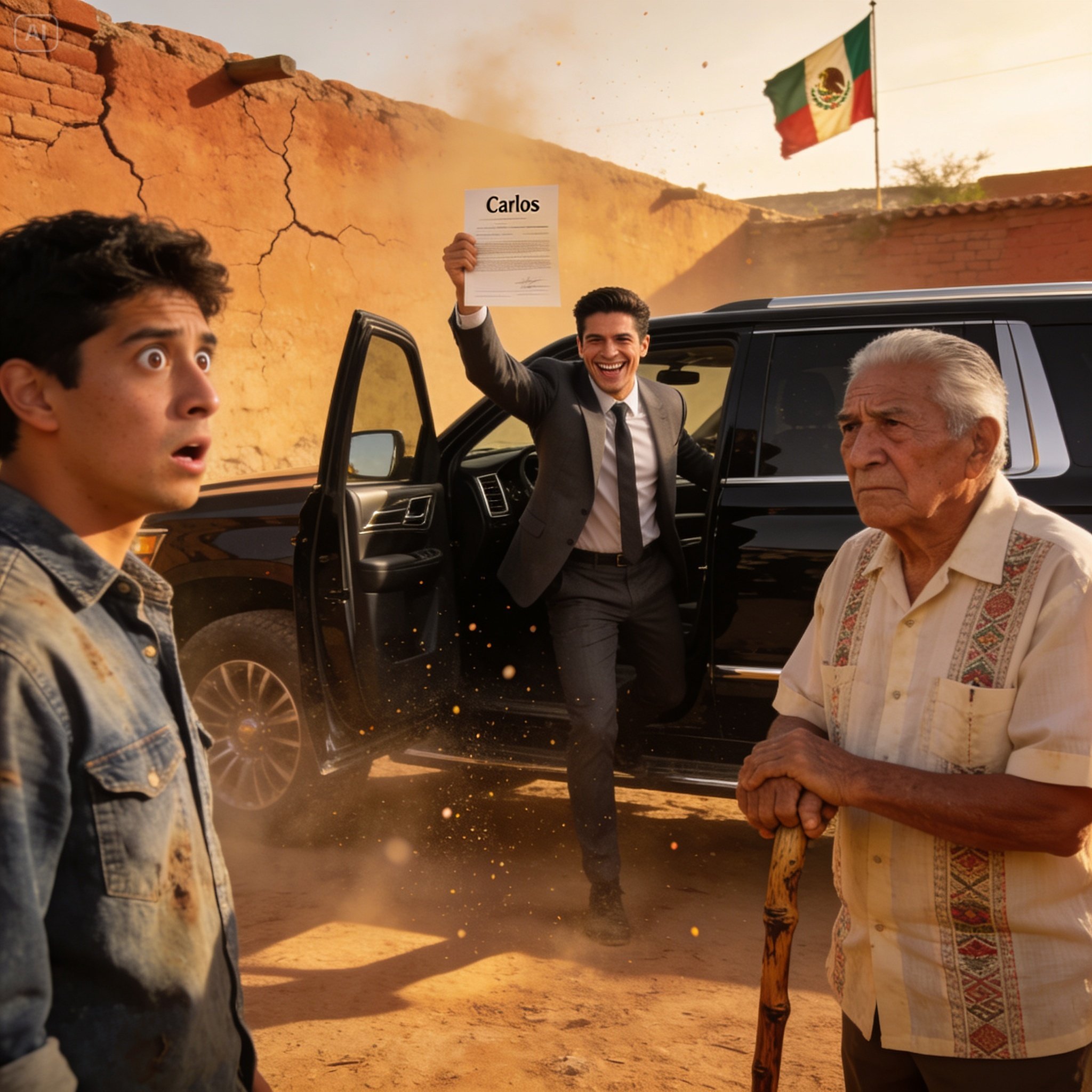 La sonrisa de Carlos era un tajo torcido en su rostro, una mueca de triunfo que no encajaba con el aire puro de la mañana. Se pavoneó hacia ellos, con sus zapatos de diseñador cubriéndose de una fina capa de polvo rojizo, como si la tierra misma se negara a ser pisada por él. El hombre del traje, a quien Carlos presentó como el “licenciado Valdivia”, permaneció un paso atrás, con un maletín de cuero apretado en la mano y una expresión de indiferencia profesional que resultaba aún más insultante.