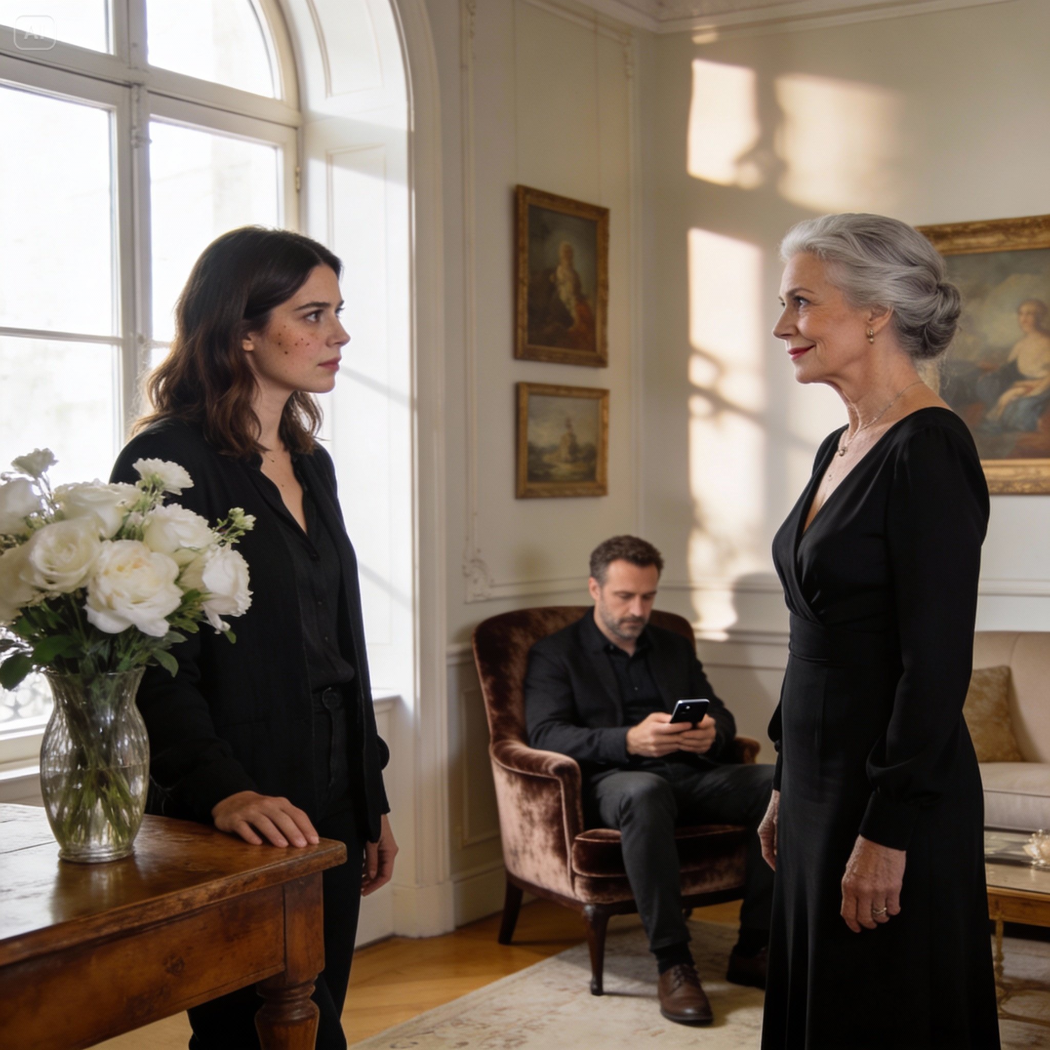 C’est à ce moment-là que les autres personnages de la pièce, attirés par ce drame d’une intensité inédite, sont revenus sur scène. Léon est apparu dans l’encadrement de la porte du salon, son journal oublié dans sa main. Il ne regardait pas son fils ou sa femme, mais un point vague au-dessus de l’évier, comme s’il était un simple spectateur d’un accident de voiture. Chloé est rentrée de l’extérieur, son téléphone toujours à la main, ses yeux de biche effrayée allant de sa mère à son frère, puis à moi.